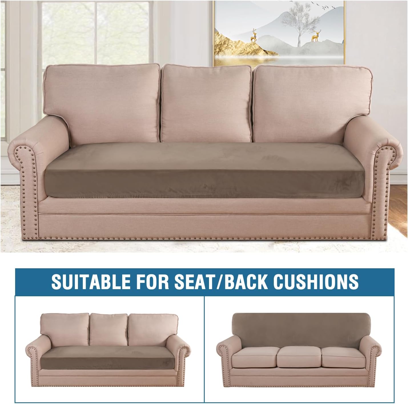• STAY IN PLACE: Featuring non-skid thick elastic bottom, our cushion slipcover can stay tight with no snag, no wrinkling, shifting or slipping on both leather and cloth sofa