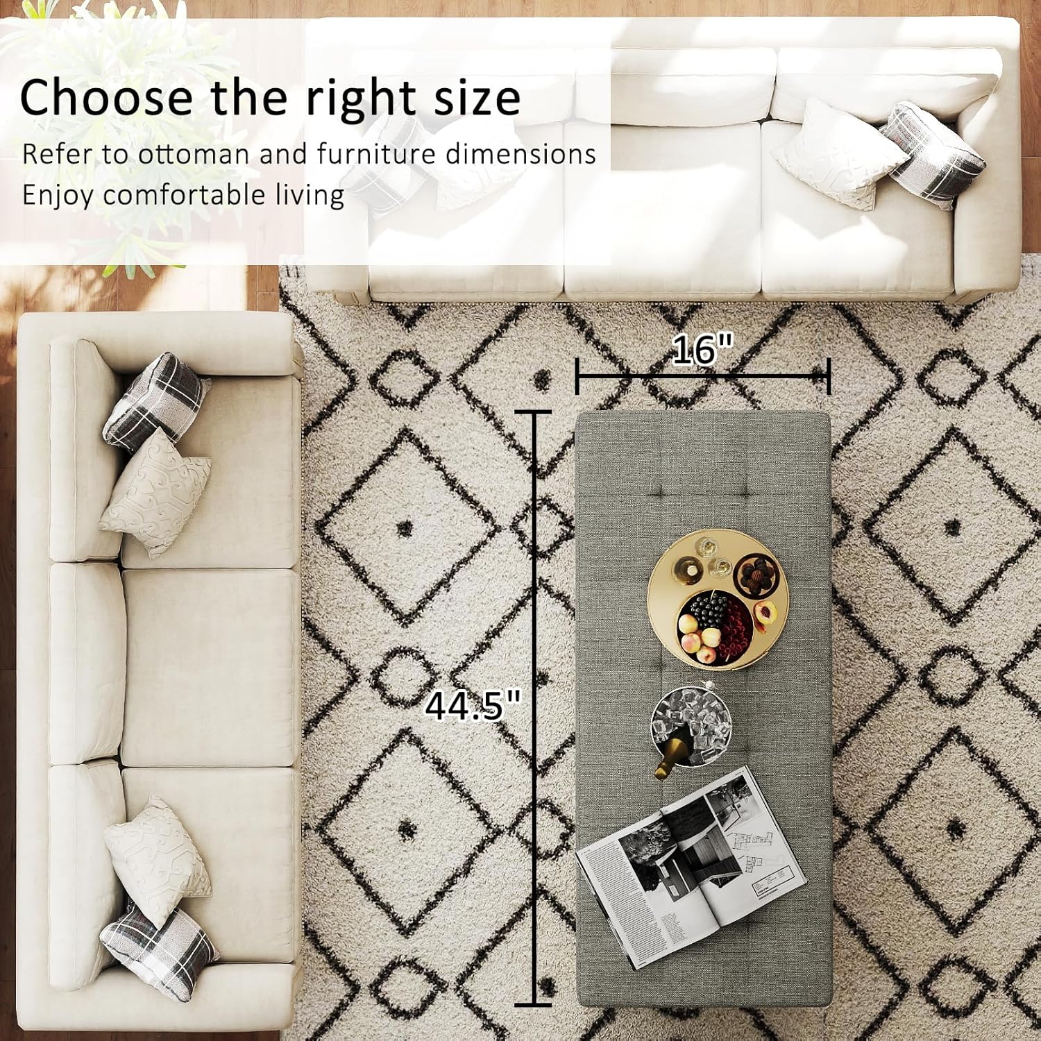 • Comfortable and Safe: The rectangular ottoman upholstery is made of high-end sponge with strong support and good resilience. The 3.2" thick high elastic sponge wraps the corners of the table to prevent bumping and protect your family's safety