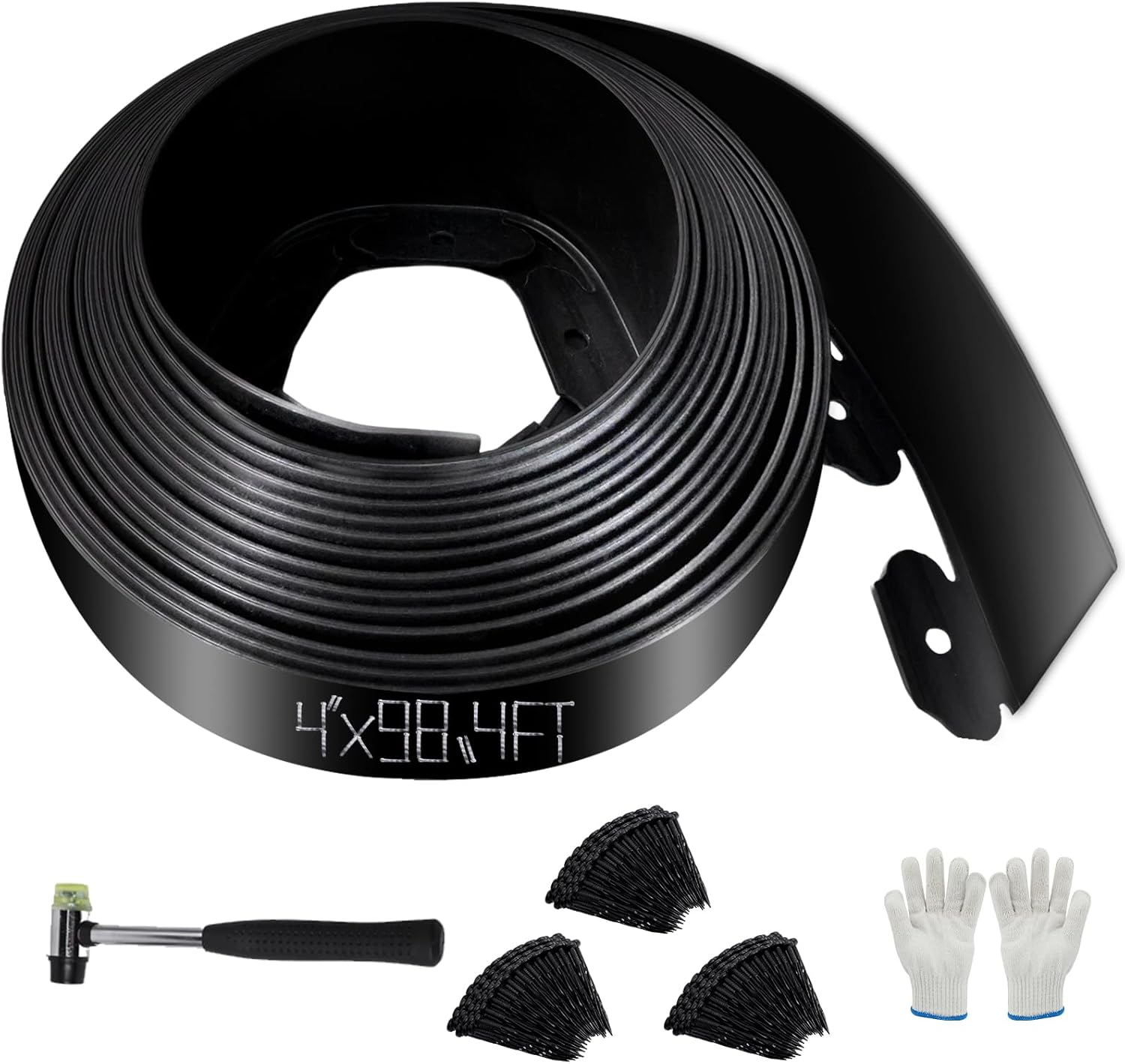 No Dig Landscape Edging 4" x 98.4FT Kit, Plastic Edging for Landscaping with 100 Spikes for Garden, Lawn, Flower Beds and Yard
