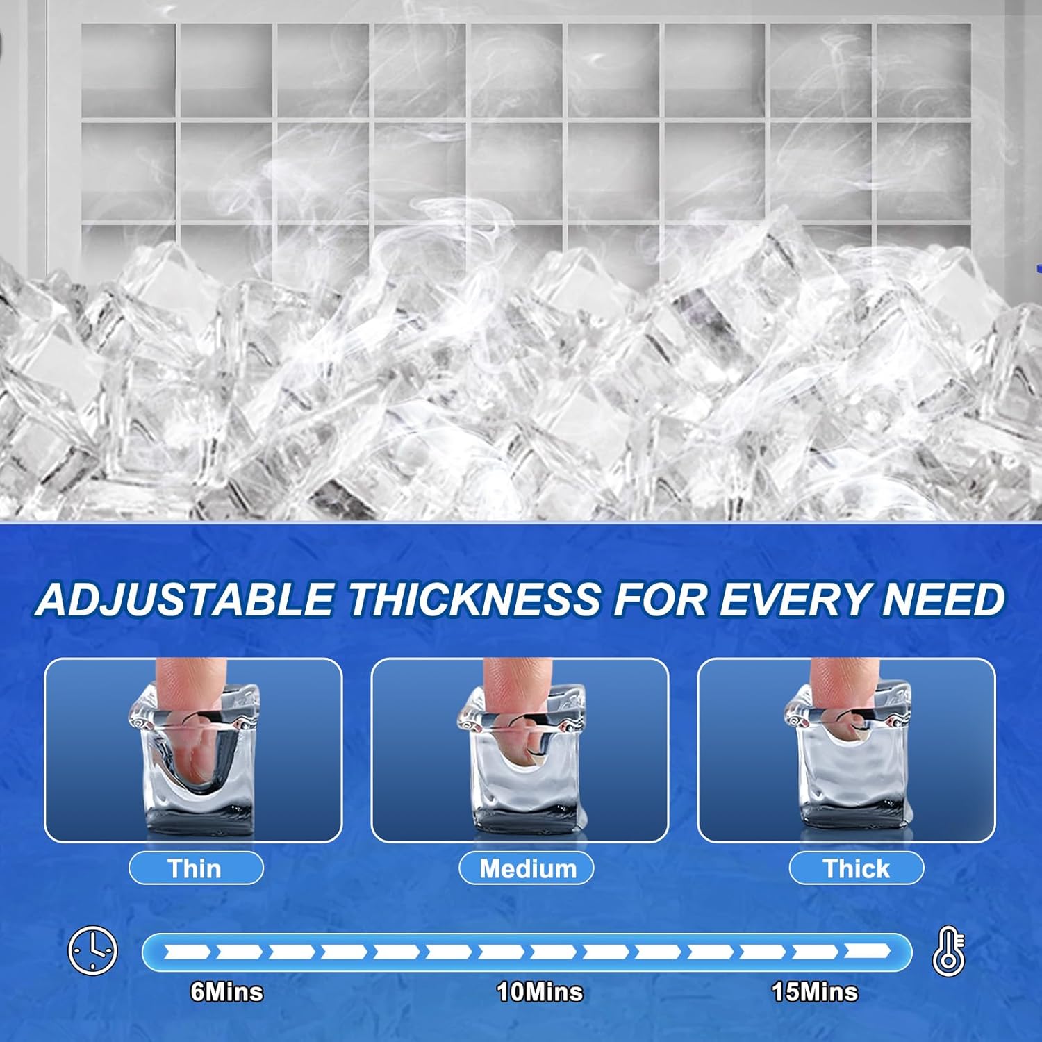 • Heavy-Duty Stainless Steel Construction - Crafted from durable stainless steel with a food-grade PP liner, our ice maker is both clean and hygienic. The thick foam insulation effectively minimizes heat transfer and slows ice melting. (Note: Please store ice in a freezer, as the storage bin is not refrigerated.)