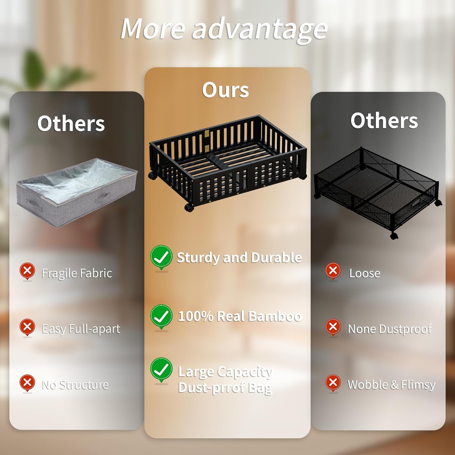• Easy Assembly & Fit Most Beds: Simple assembly required, and the compact design fits under most standard beds. Transform the wasted space under your bed into a functional storage area with these bamboo under bed storage units.
