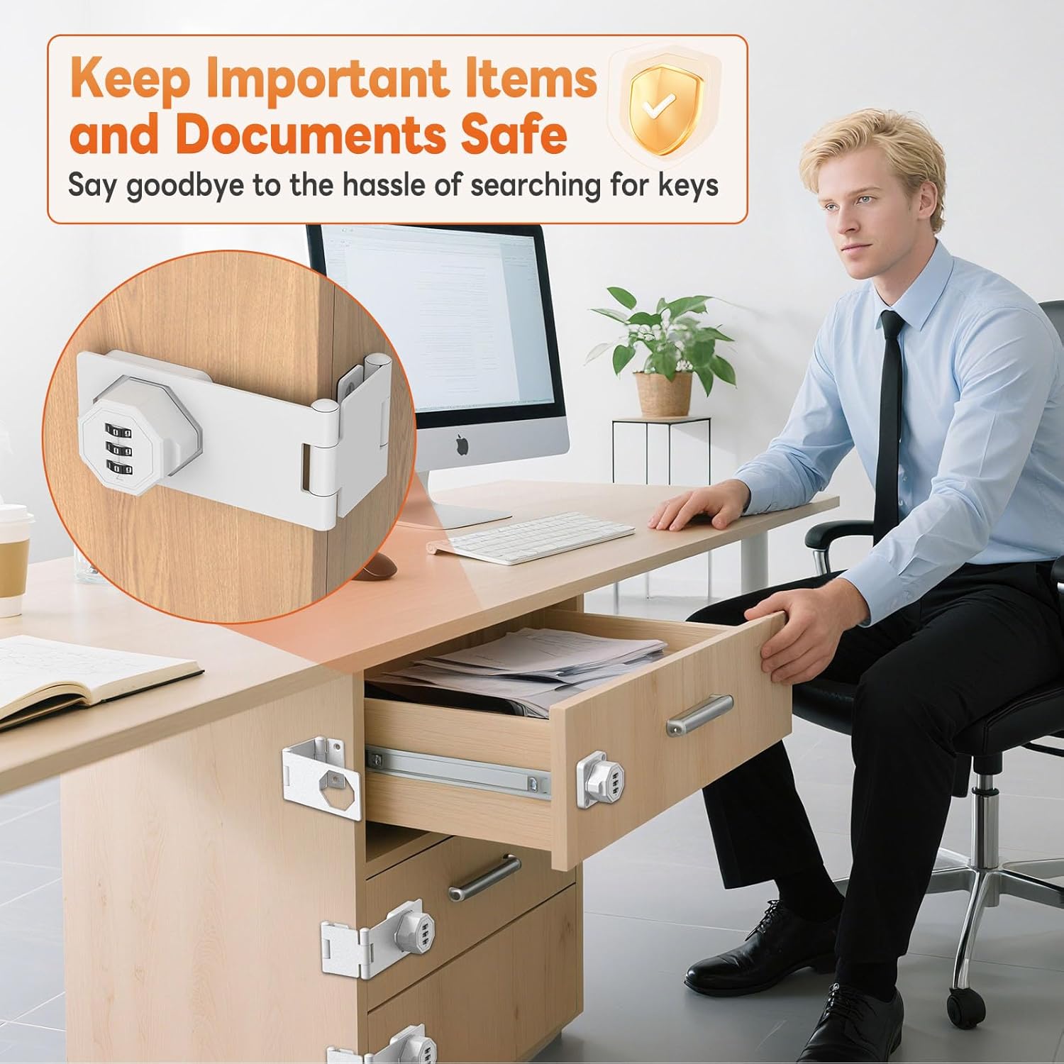 • Multi-Scenario Adaptation: This folding cabinet door lock is designed for 90° angle cabinets, support left & right bi-directional flexible installation, widely adapted to office filing cabinets, drawers, storage cabinets, safes, mailboxes, etc., to enhance the security level of different cabinets