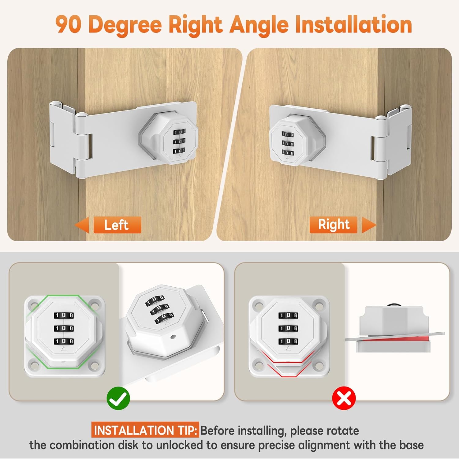 • Package Kit: Includes 2 x 90° cabinet locks with combination, 30 x screws, 16 x expansion tubes, 1 x installation manual, complete accessories, easy to install