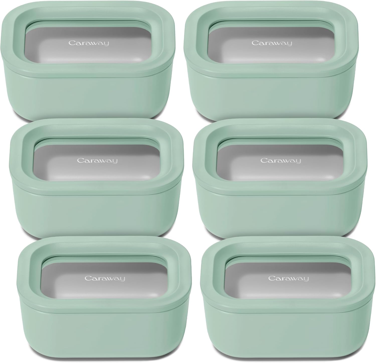 Caraway 6pc Glass Food Storage Set - 2.6 Cup Storage Containers For Food (6) - Non-Toxic Ceramic-Coated Glass - Air Release Technology - Compact & Stackable Design - Mist