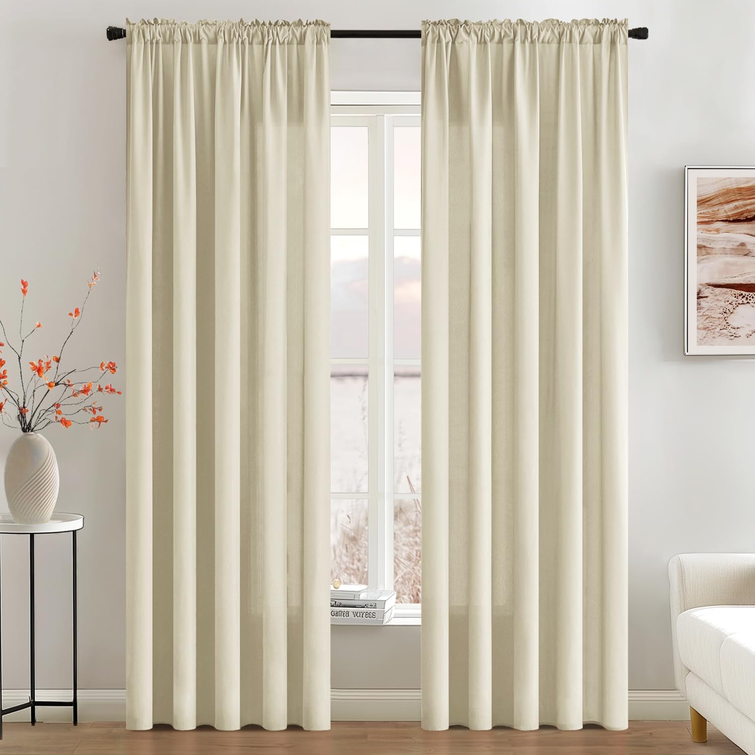 MIULEE Cream Beige Privacy Sheer Curtains That Let Light in 90 Inches Long Non-See-Through Semi Sheer Curtain Light Filtering Window Curtains Drapes for Living Room Bedroom 2 Panels Set 42 X 90