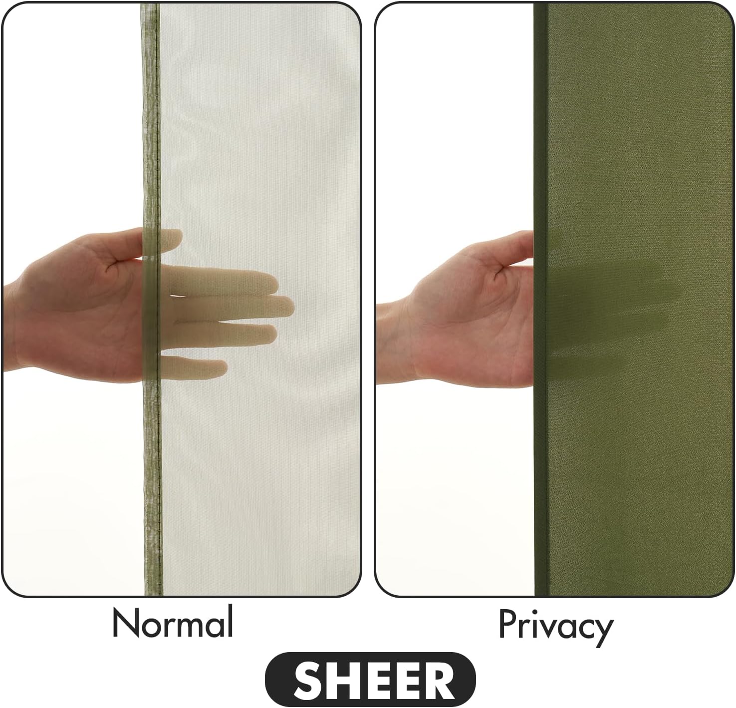 MIULEE Olive Green Privacy Sheer Curtains That Let Light in 90 Inches Long Non-See-Through Semi Sheer Curtain Light Filtering Window Curtains Drapes for Living Room Bedroom 2 Panels Set 42 X 90
