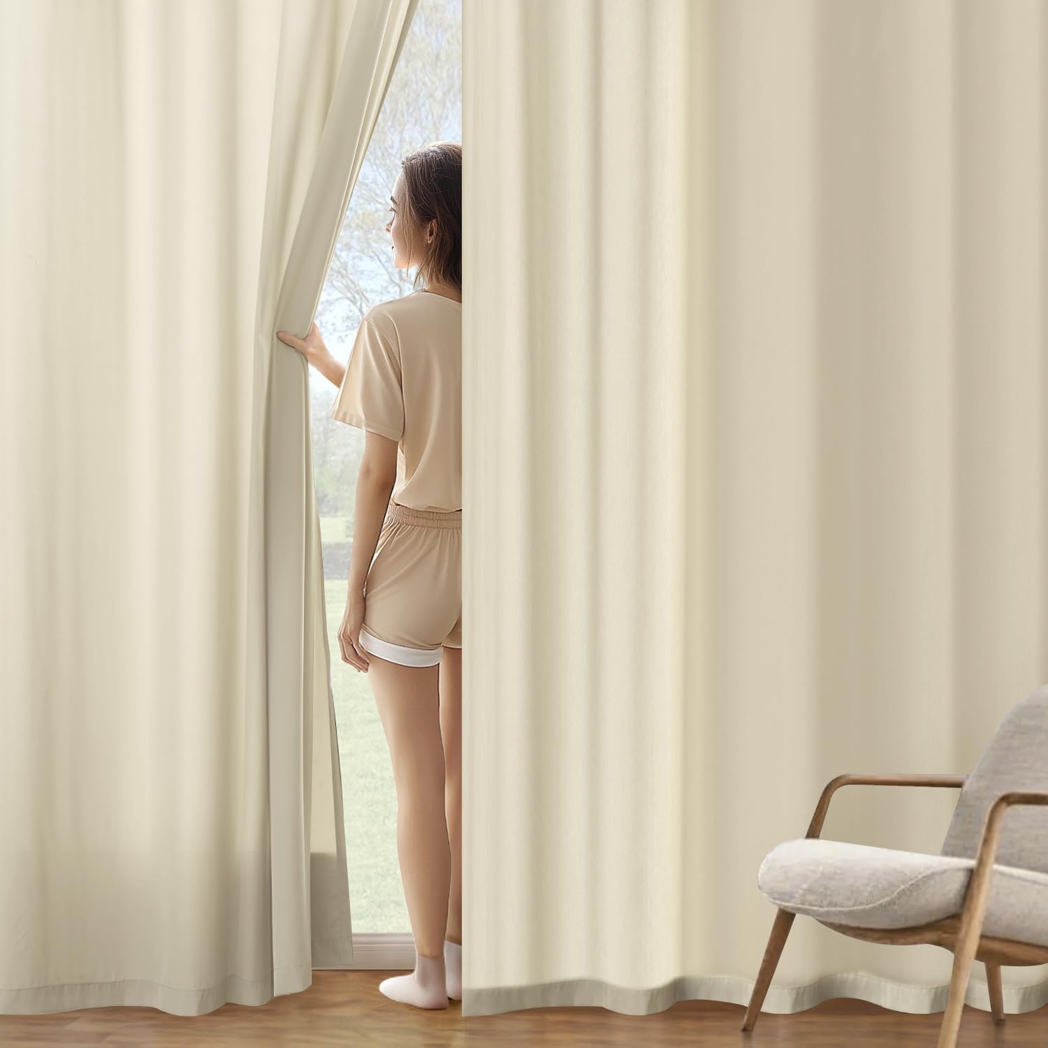• Privacy Protection: Non see through and so light and airy. Not tulle and just a bit thicker. These curtains let some diffused light in but are not see through, which provides a safe and comfortable space.If you really like natural light but want privacy, this is a great choice.
