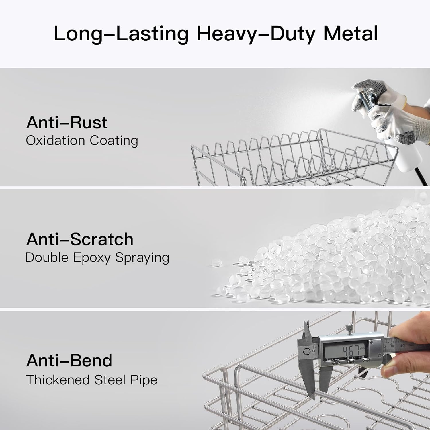 • 🔩 Rust-Resistant & Heavy-Duty Metal Dish Drying Rack: Durable metal dish drying rack with anti-oxidation coating. Withstands daily use—no bending, peeling, or wear over time