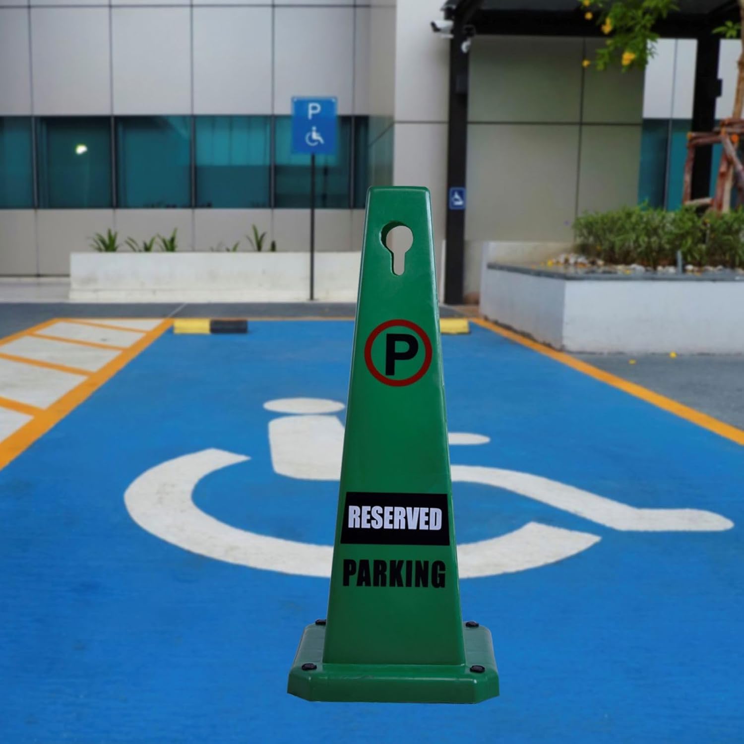 8-Pack 26.5" Caution Cones, 4-Sided Visible Safety Signs with Heavy Rubber Base, Warning for Slip & Fall Prevention, Indoor/Outdoor Use (Green, 8Pcs-Reserved Parking)