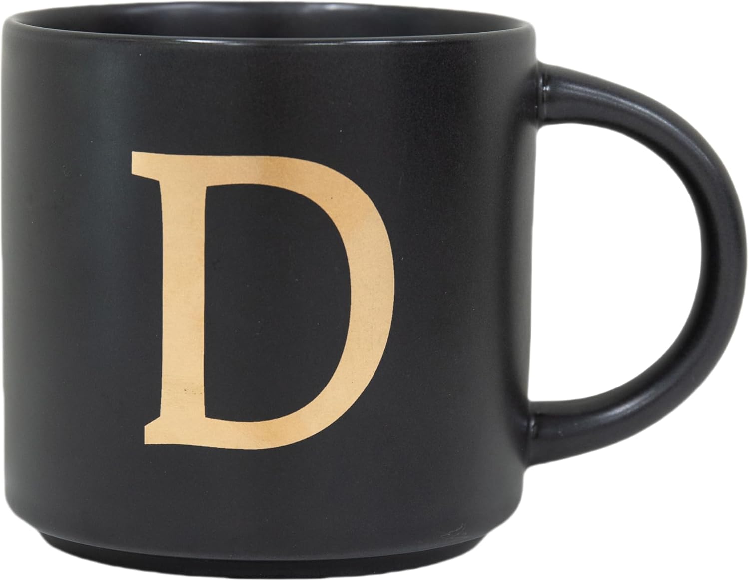 COLLECTIVE HOME - Monogram Ceramic Mugs, 15 oz Golden Initial Black Coffee Cups, Elegant Alphabet Tea Mugs, Elegant Personalized Mug with Gift Box, Unique Mug with Double Side Capital Lette (D)