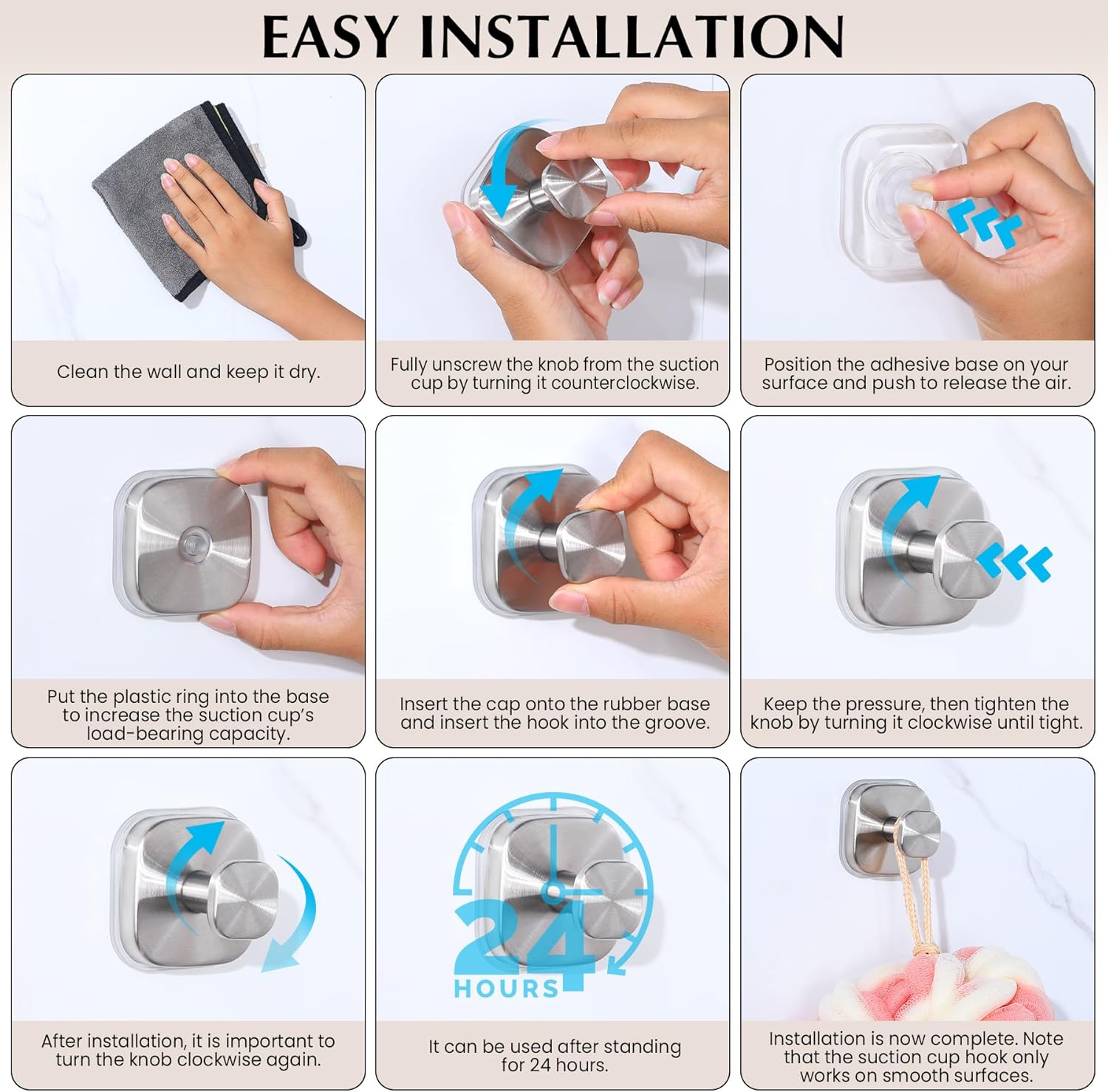 • 2:Heavy Duty Hooks - Metal Use Heavy duty suction cup hooks reposition easily on appliances – reusable design. Robe hooks for bathrooms remove cleanly – zero residue/scratches. Compact storage design.