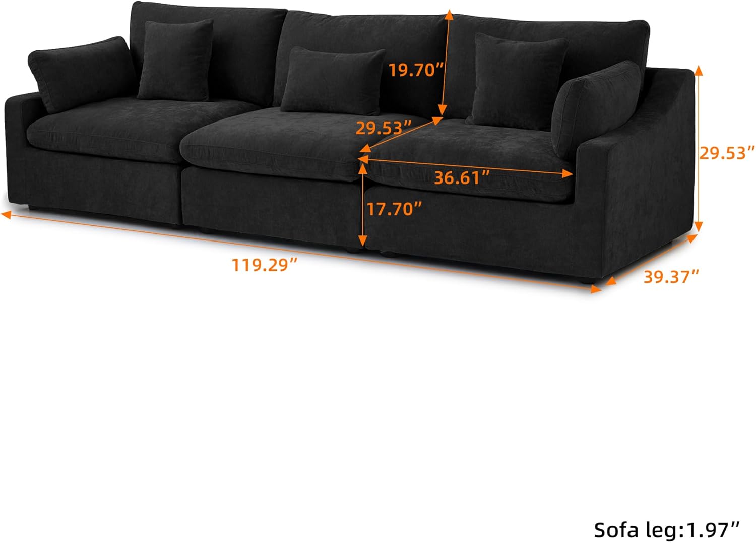 • ⛅[Size Information] Overall Size: 119.29"L x 39.37"W x 29.53"H. The cushion cover, backrest cover, and frame cover of the sofa can all be removeable and washable. You can easily keep the sofa clean.