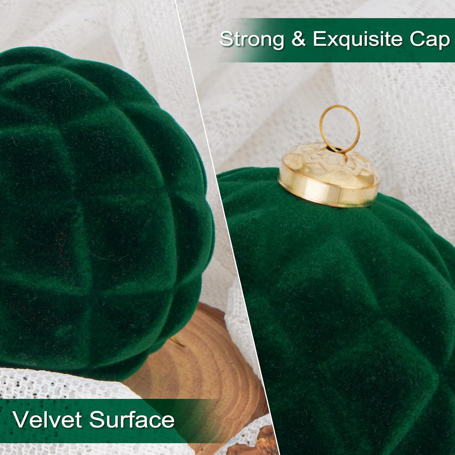 46PCS Velvet Christmas Ball Ornaments Set, Flocked Shatterproof Xmas Tree Decor, Assorted Hanging Ornaments with Loop for Holiday Home Decor, Christmas Tree, Mantel, Party Decoration (Green)