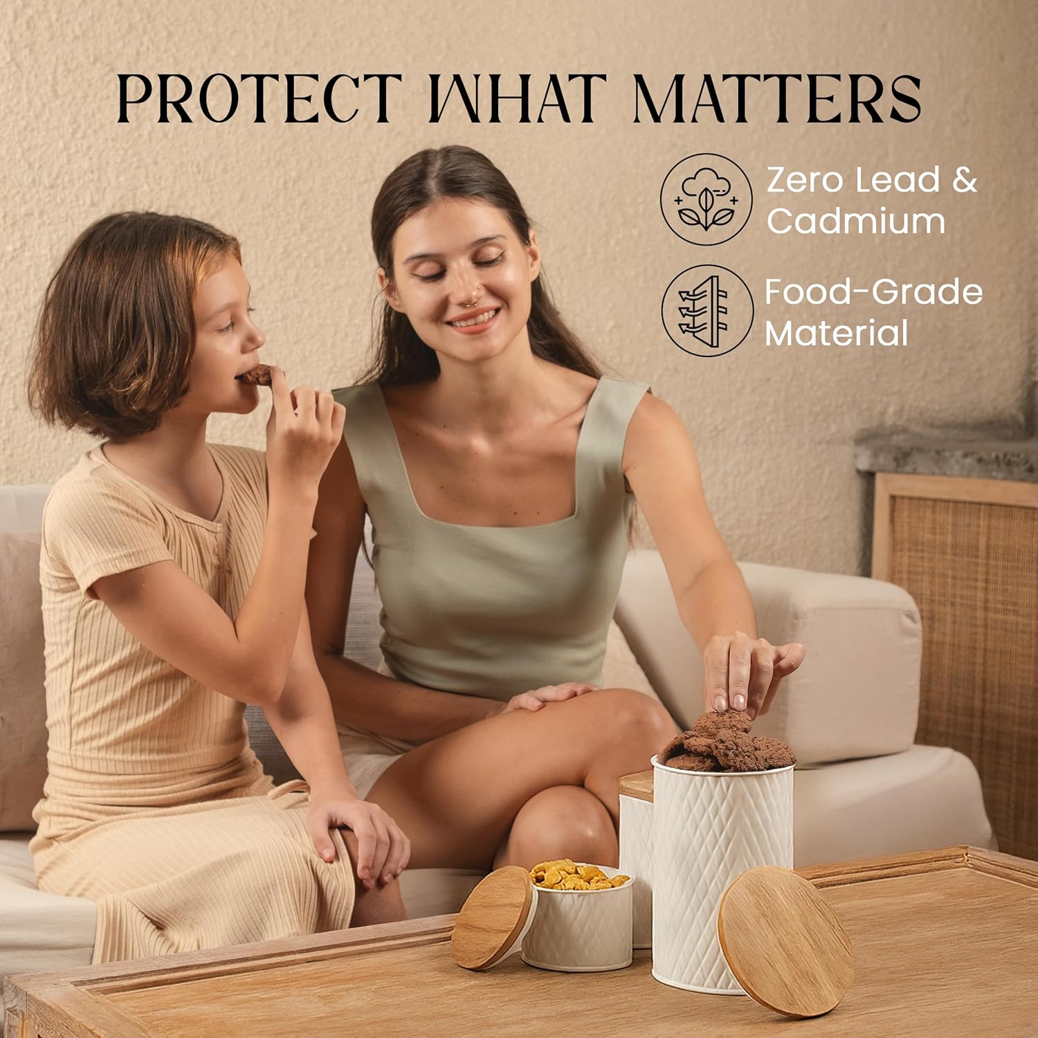 • Beauty Is in the Details – Elevate your style as you reduce stress. Your kitchen canister set delivers high-end quality with black galvanized metal and sleek acacia wood to complement any aesthetic.
