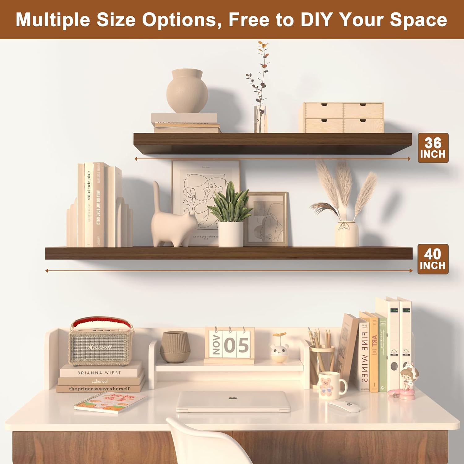• 【Hassle-Free Setup in Minutes】- No drilling expertise needed! These wall shelves for storage feature pre-drilled holes and step-by-step instructions. Just secure the hidden brackets and slide in the shelf—effortless installation for instant organization.