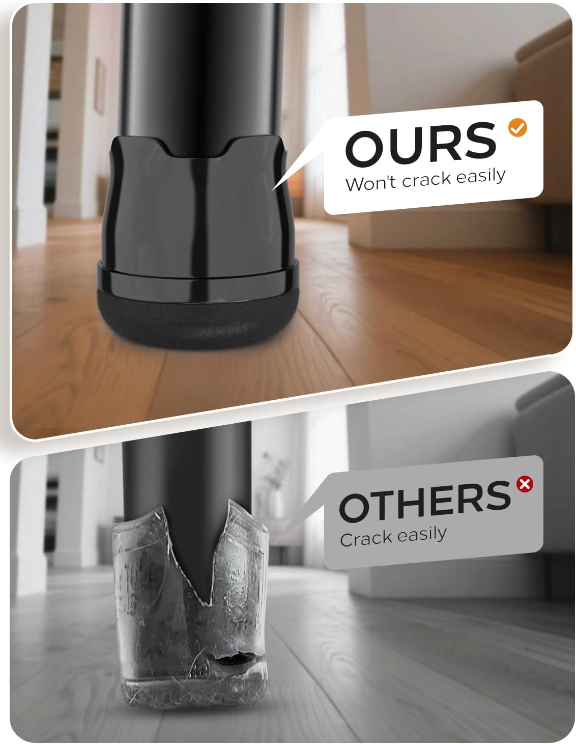 • 360° Felt-Bottom floor protectors- 360 ° fully wrapped felt design. Made from high-density industrial felt and flexible silicone to withstand daily wear, heavy chairs, and frequent movement without tearing or flattening, ensuring long-lasting floor protection.
