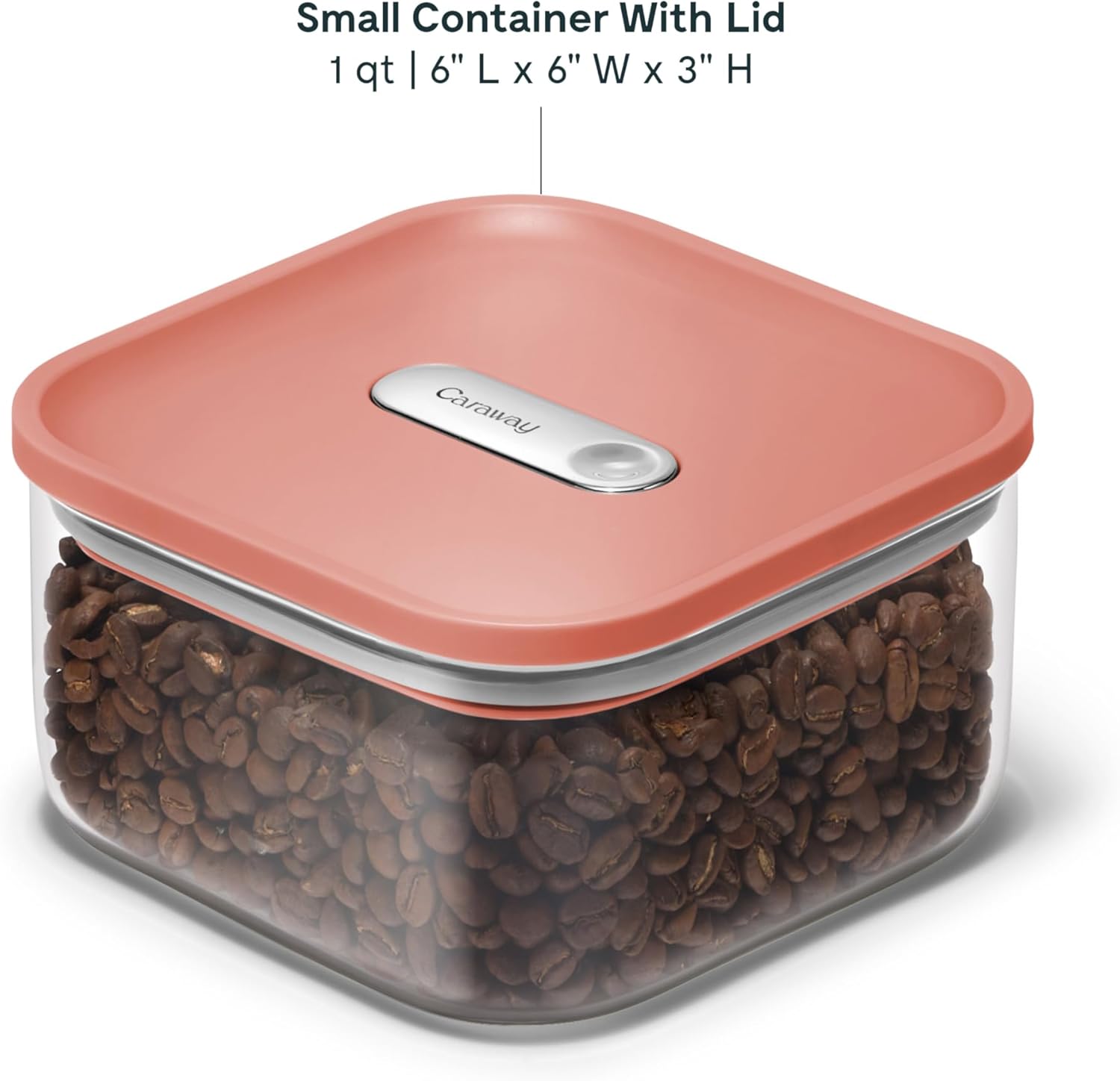 Caraway 1qt Glass Airtight Food Storage Container with Lid – Non-Toxic, BPA-Free Kitchen Storage Container – Stackable, Space-Saving Airtight Container for Dry Goods and More - Perracotta