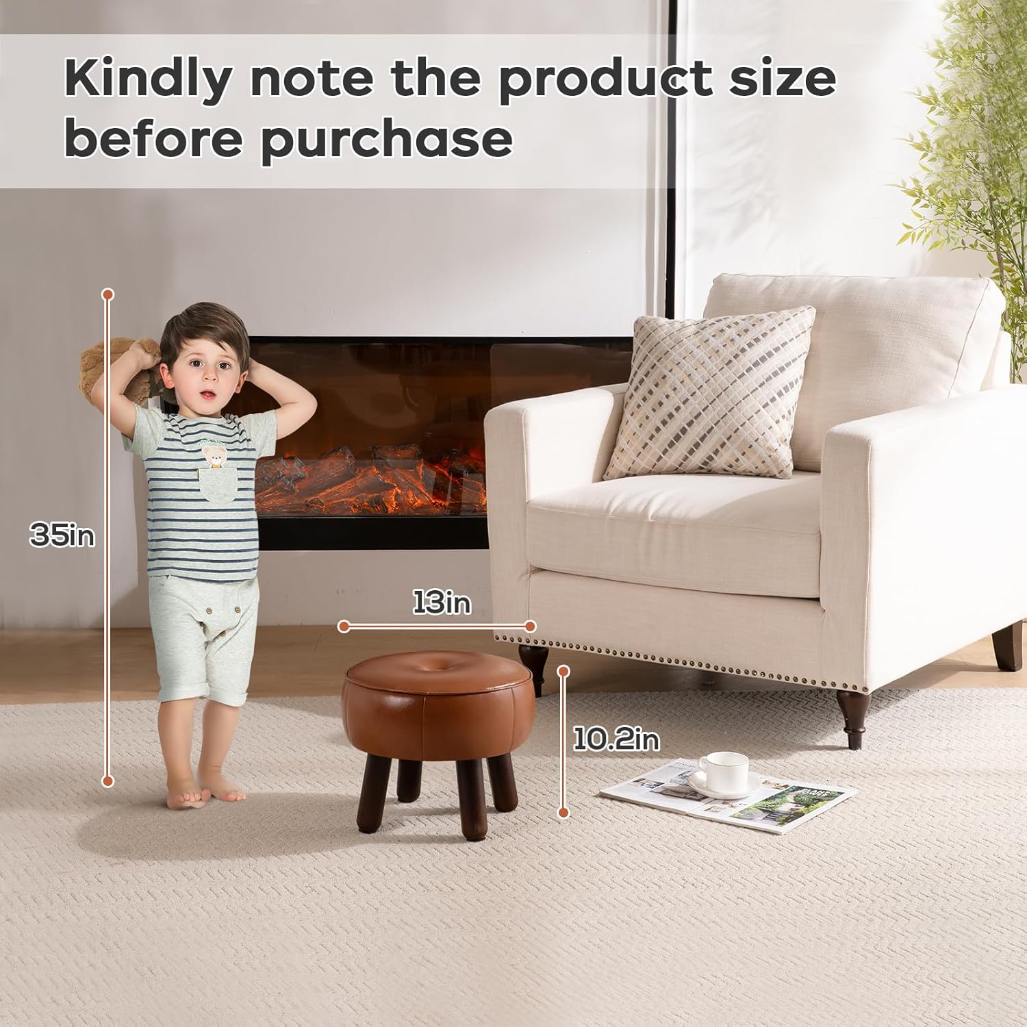 Small Foot Stool, Round Faux Leather Pouf Ottoman Foot Rest, Footstool Ottomans with Rubber Legs Under Desk, 13''L x 13''W x 10.2''H, Footrest for Couch, Living Room, Bedroom, Hallway, Brown