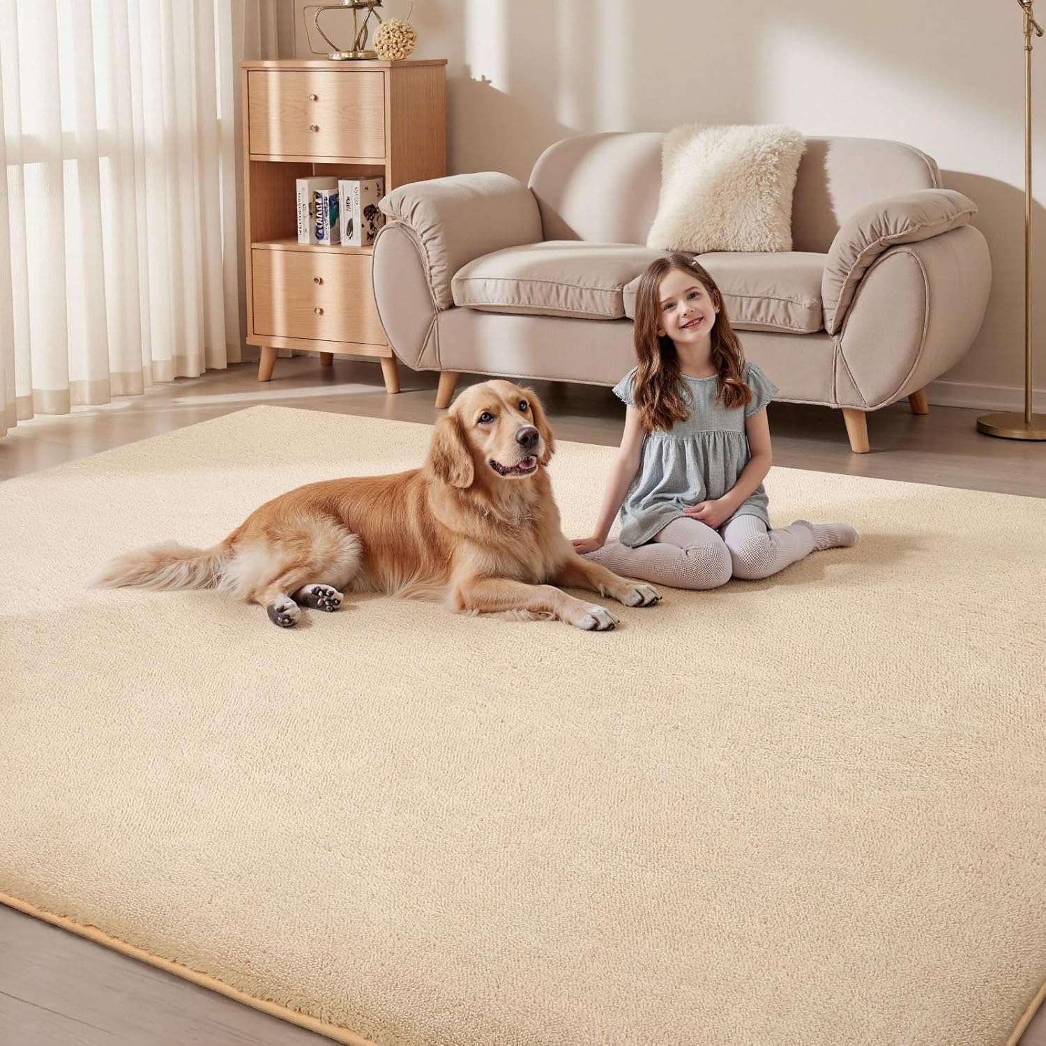 • 【SUPER SOFT FEELING】- The Area Rugs for Living is made of premium short wool coral fleece, The surface is dense and soft, luxurious, skin-friendly,Middle is high resilience sponge can reduce pressure on you feet and enhance the softness.you can freely lie on it to relax or play games with the family.