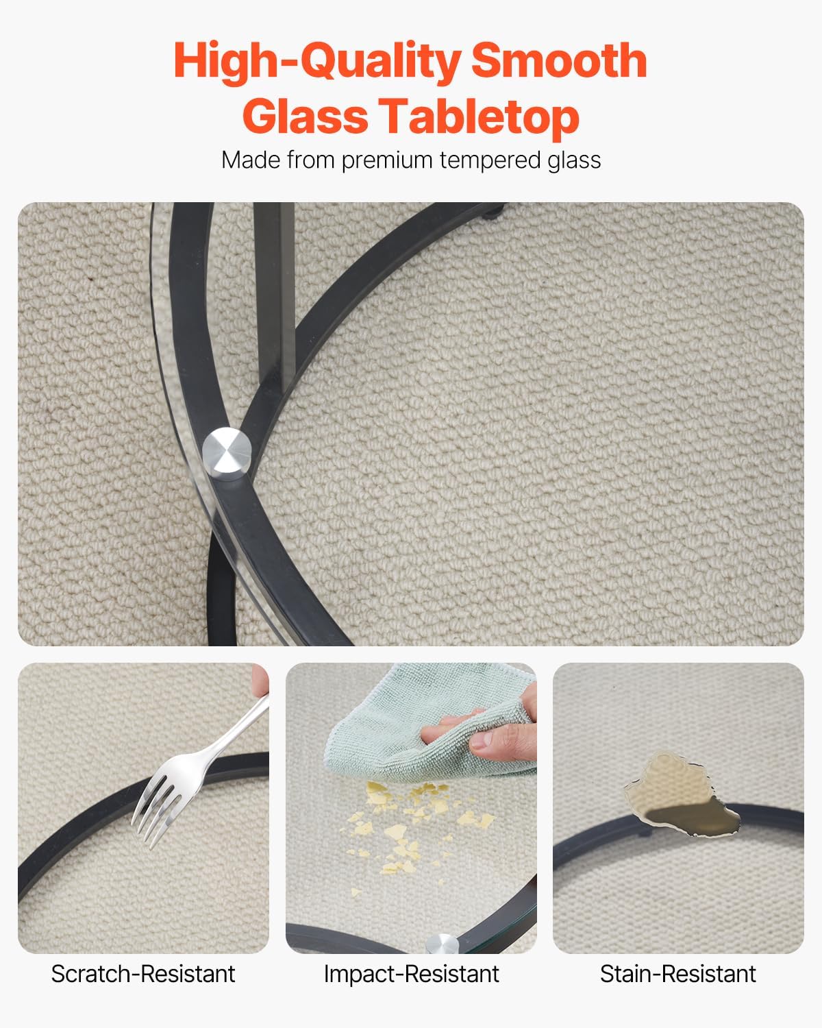 VEVOR Nesting Tables, Glass Coffee Table Set of 2, 23.6 inch Round Coffee Table, Small Coffee Tables Night Stand with Metal Frame, for Living Room, Bedroom, Office
