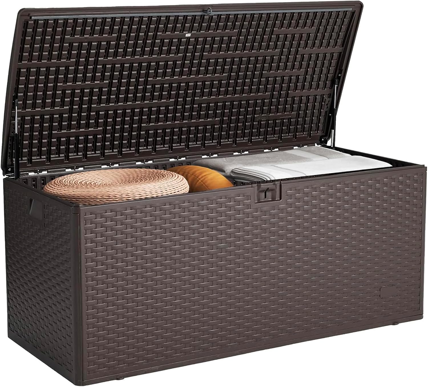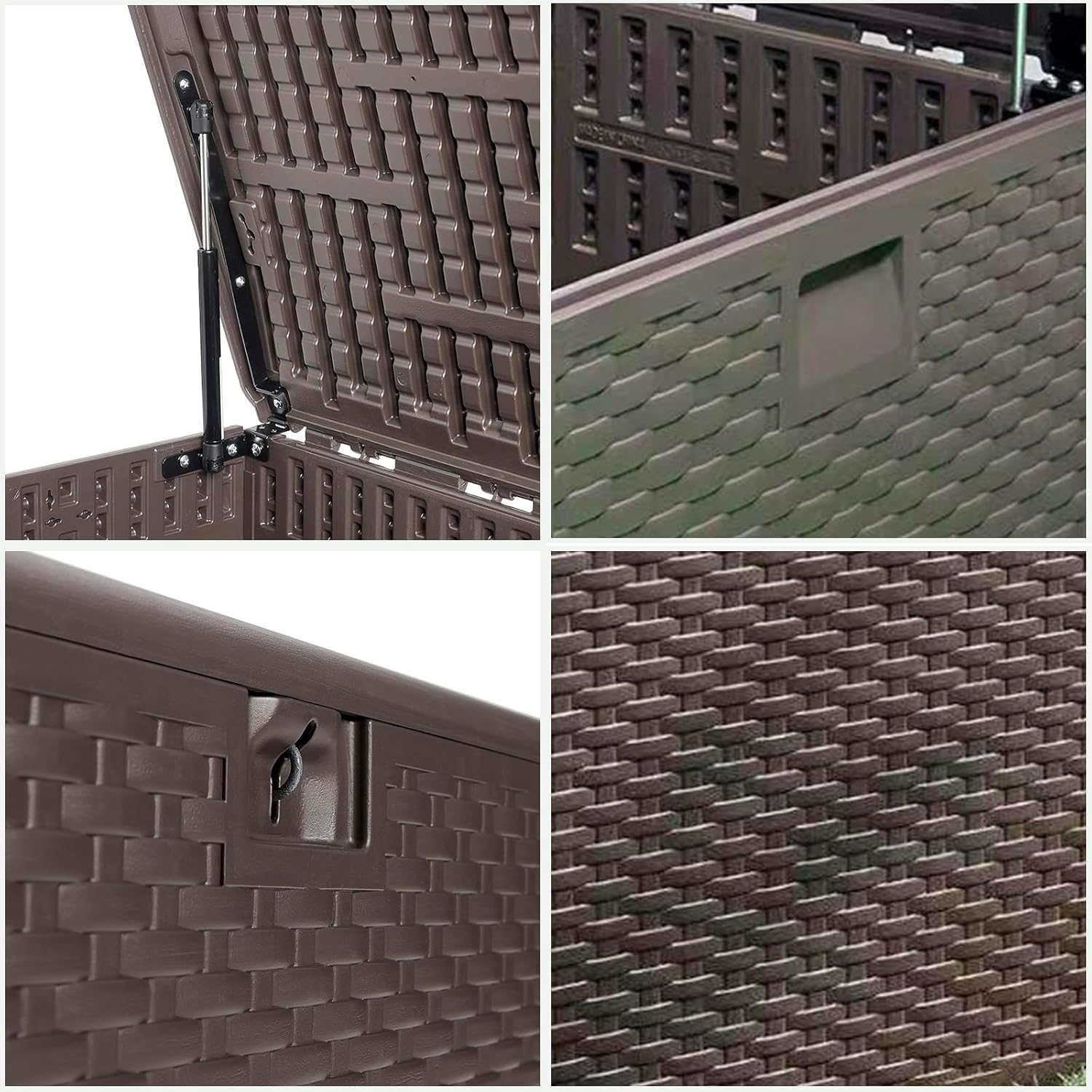 • Stylish Wicker Design:Featuring an elegant brown wicker pattern, this versatile deck box adds a sophisticated touch to your patio, garden, backyard, or indoor spaces like garages and basements, seamlessly complementing any outdoor or indoor decor