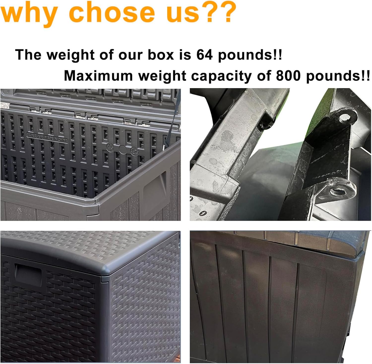 • Durable Resin Construction: Built with double-wall resin, this waterproof and weather-resistant deck box ensures long-lasting reliability and supports the weight of three adults for extra seating