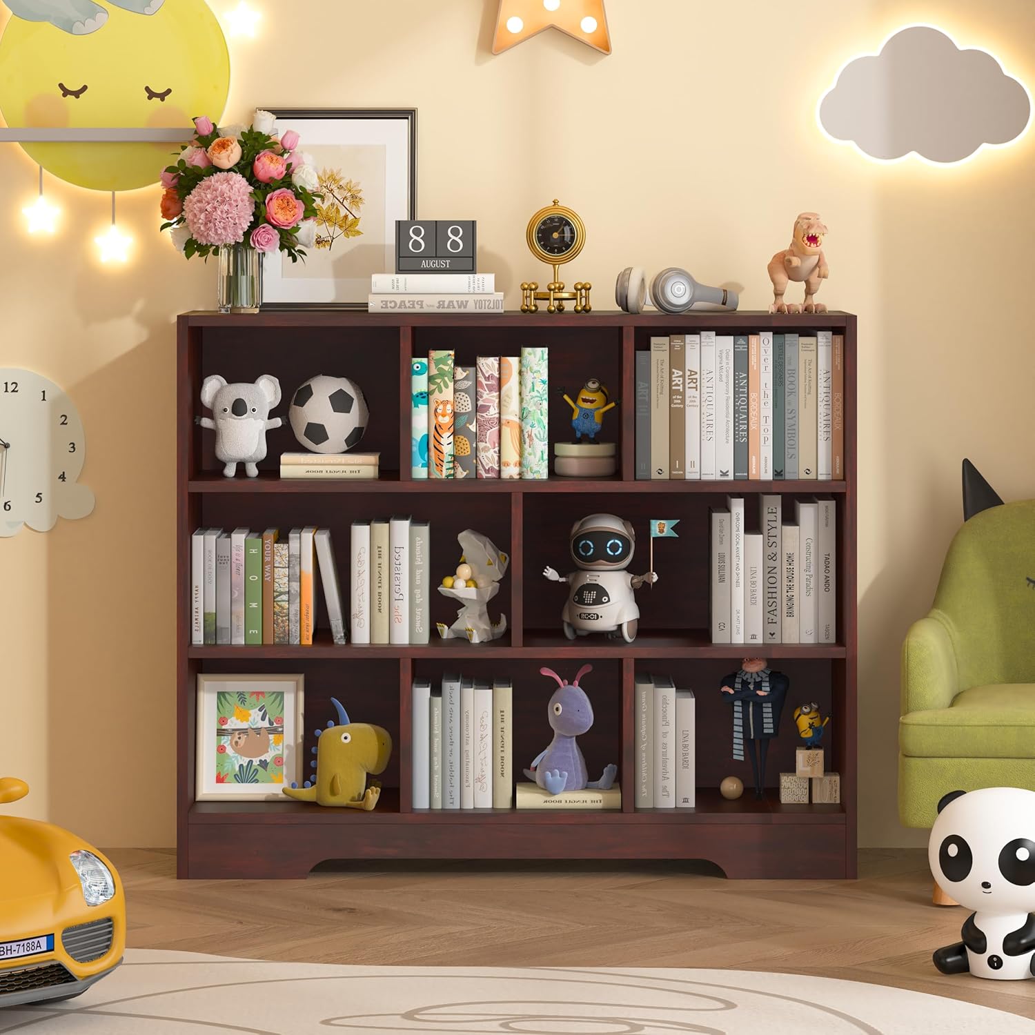 Book Shelf Set of 2, 8 Cubes Storage Organizer, 3-Tier Open Bookshelf Wooden Bookcase, Freestanding Cherry Bookshelf Cube Shelf for Living Room