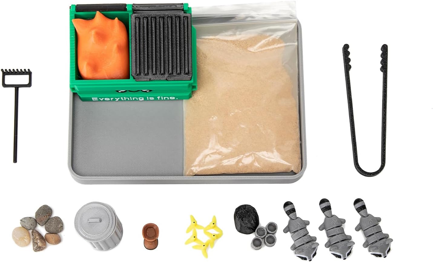 Stylor Dumpster Fire Zen Garden Desk Decor - Miniature Sandbox with Raccoon & Flames, Humorous Office Stress Relief Gift, Includes Stones, Sand & Accessories