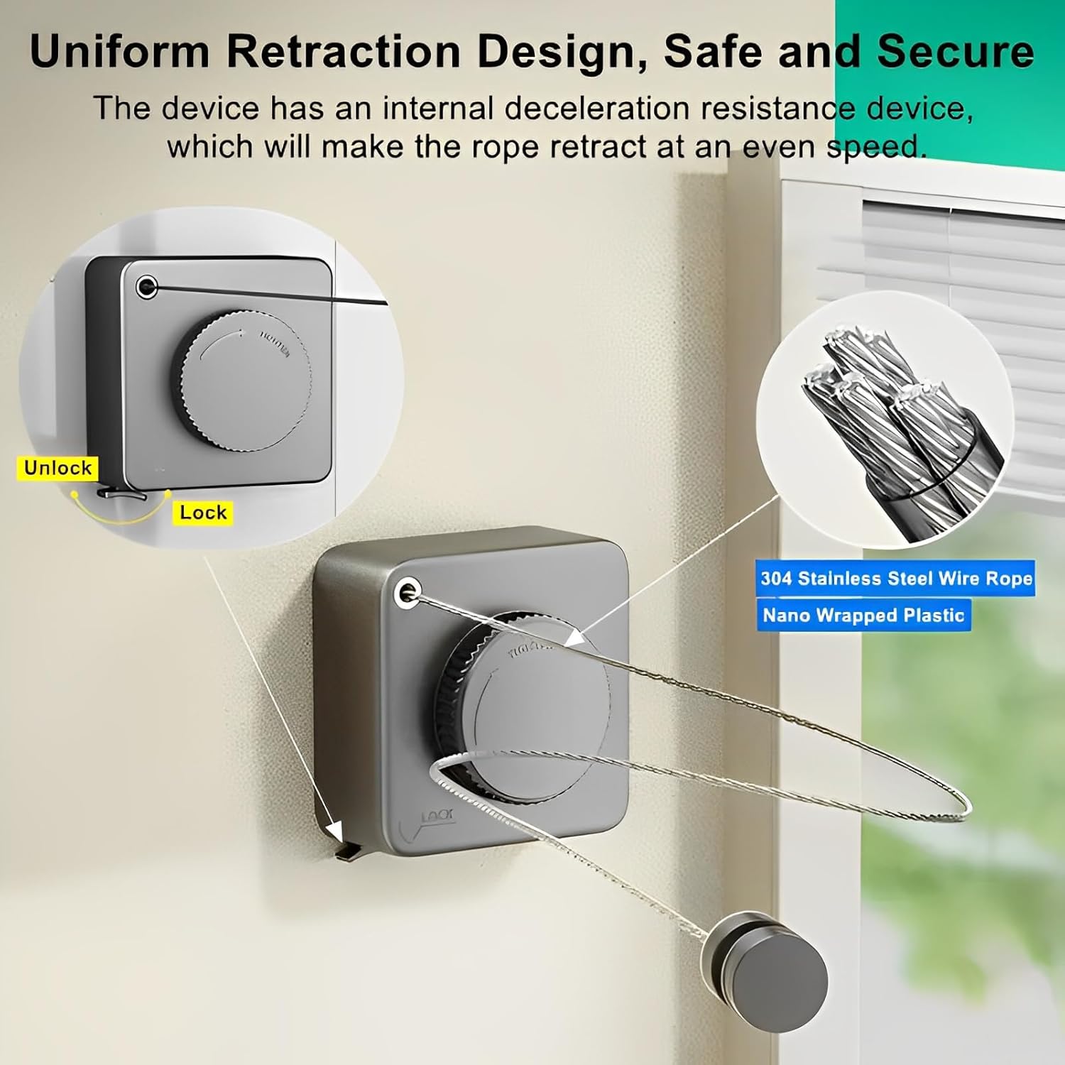 • 【Space Saving】Our washing line is designed with a retractable structure, which can be easily pulled out to meet drying needs when in use, and can be automatically retracted and retrieved when not in use, taking up almost no space,you will even ignore that you have a clothesline in place. Whether it's a small balcony, a compact bathroom, or a multi-functional living space, it fits in seamlessly and maximises the use of space;