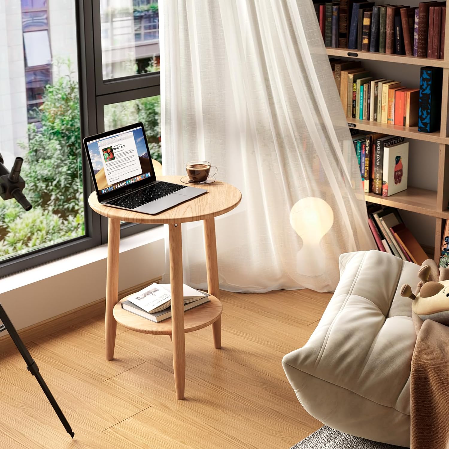• 【Durable Beechwood Construction】Crafted from premium solid beechwood, this wood end table boasts durability and natural beauty. Its sturdy structure resists wear and tear, making it a timeless addition to your round end tables living room collection.