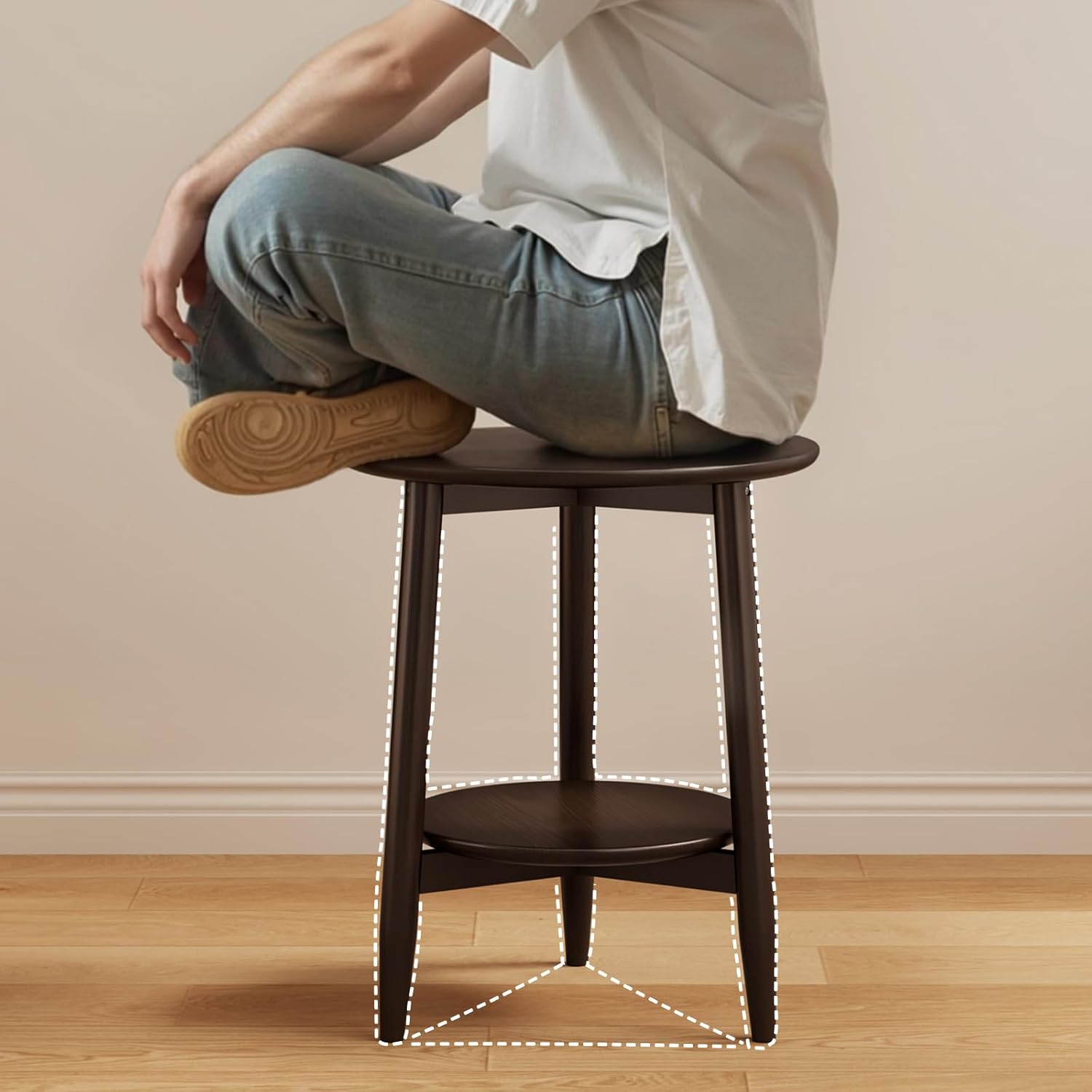 Round End Table,Solid Wood Small Round Table with Lower Shelf,Round Side Table,Nightstand for Small Spaces,Living Room,Bedroom(Walnut)