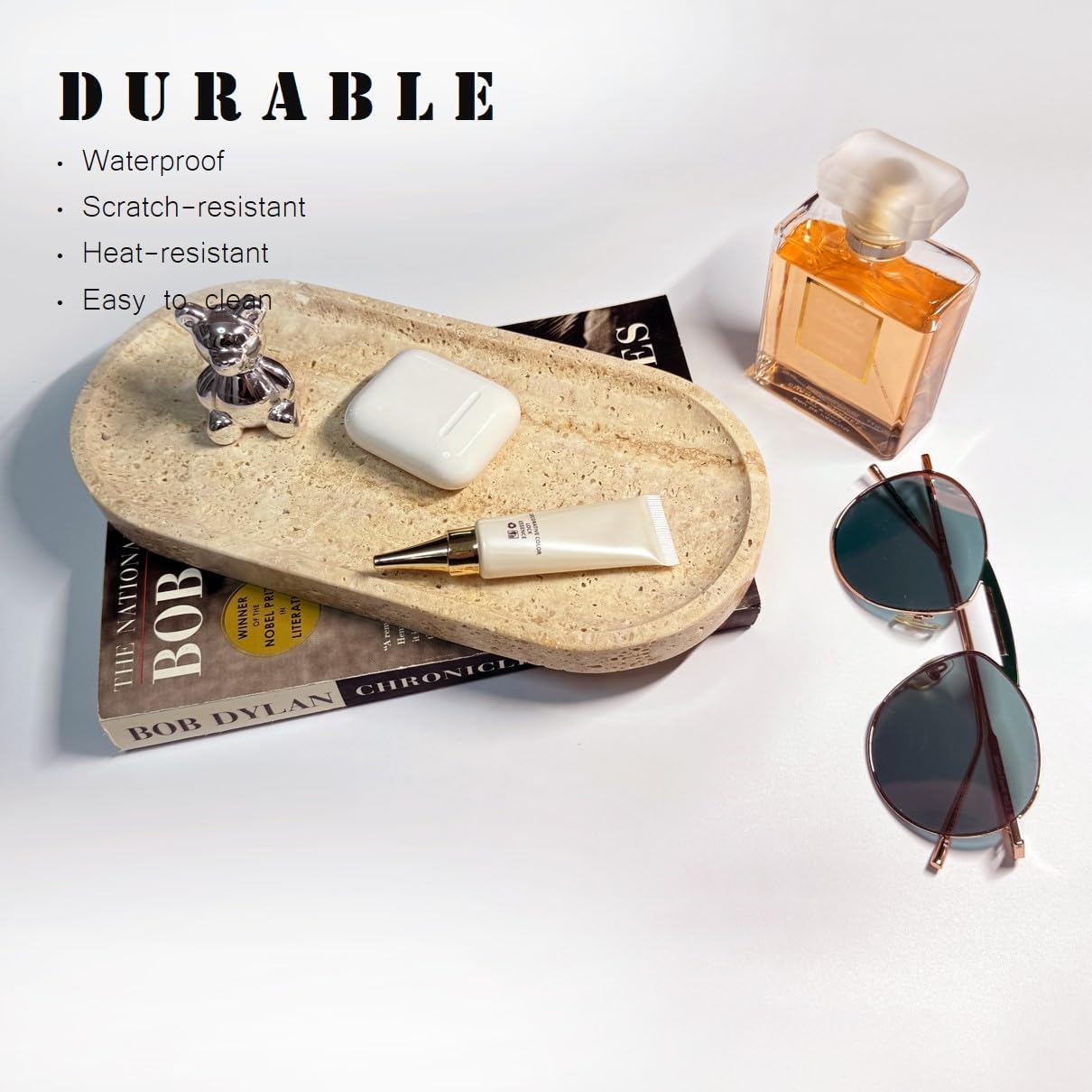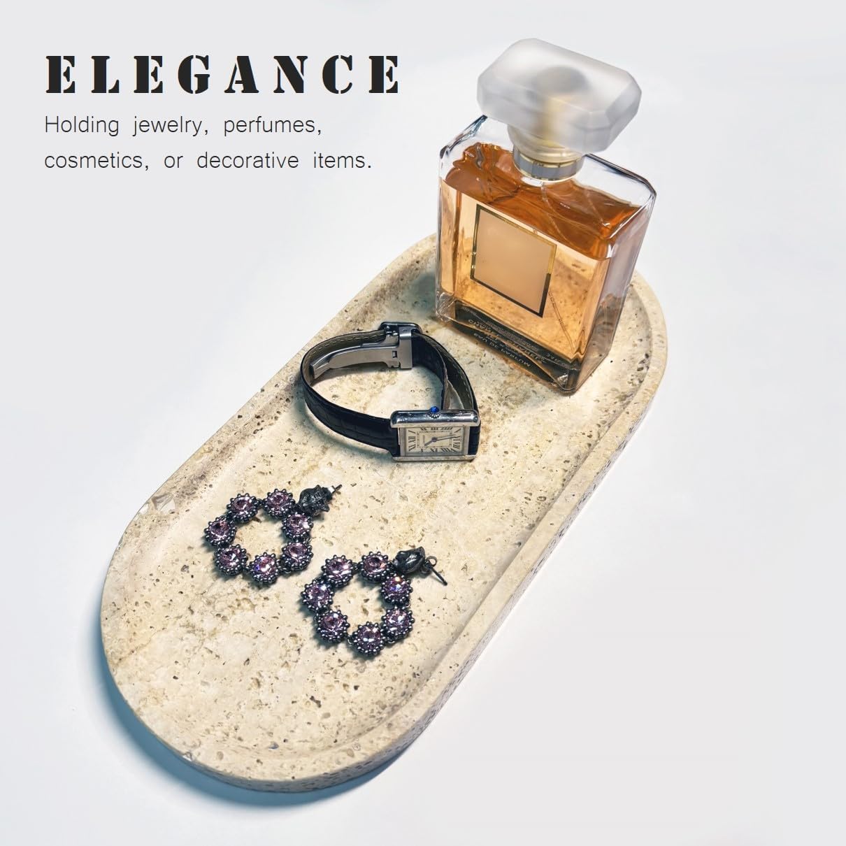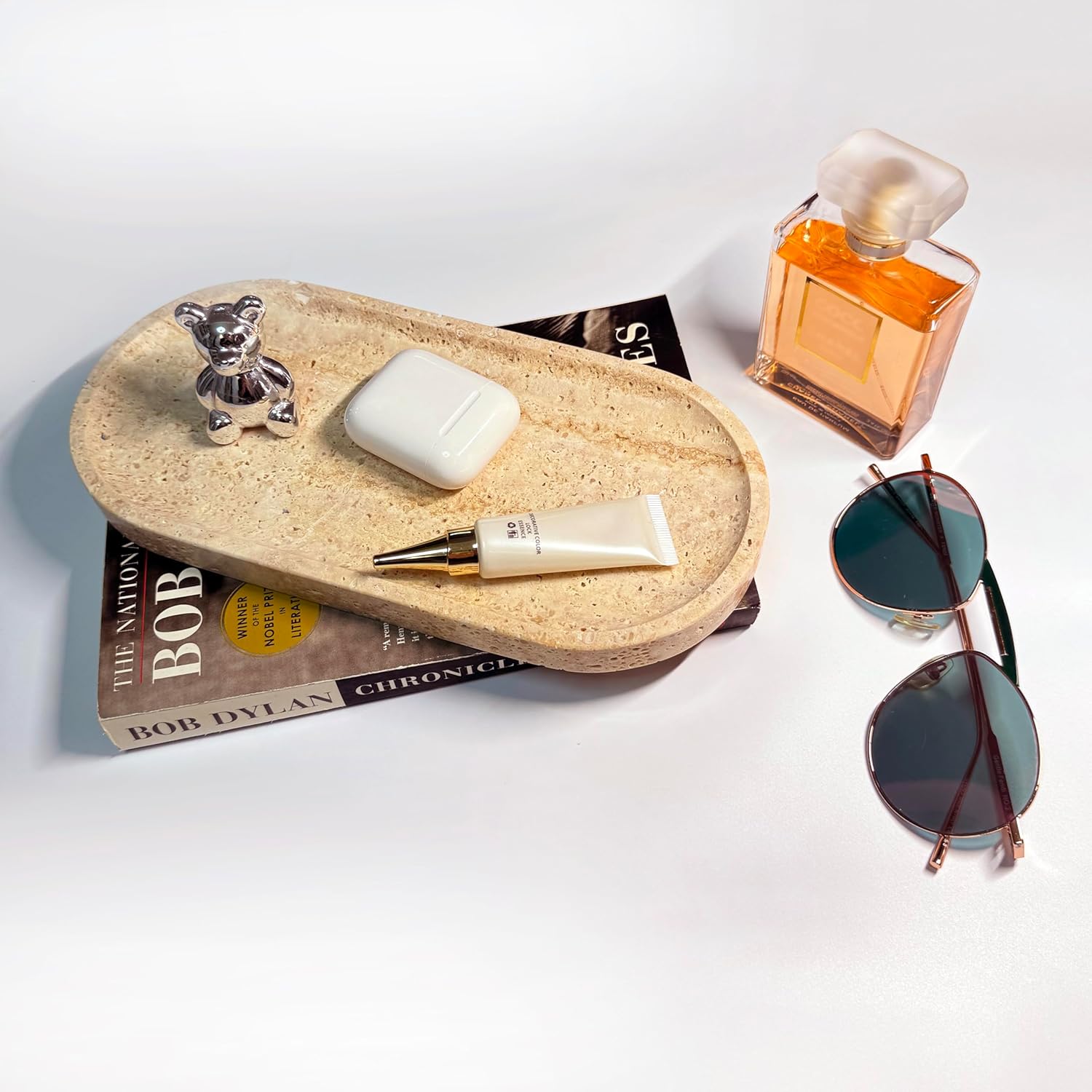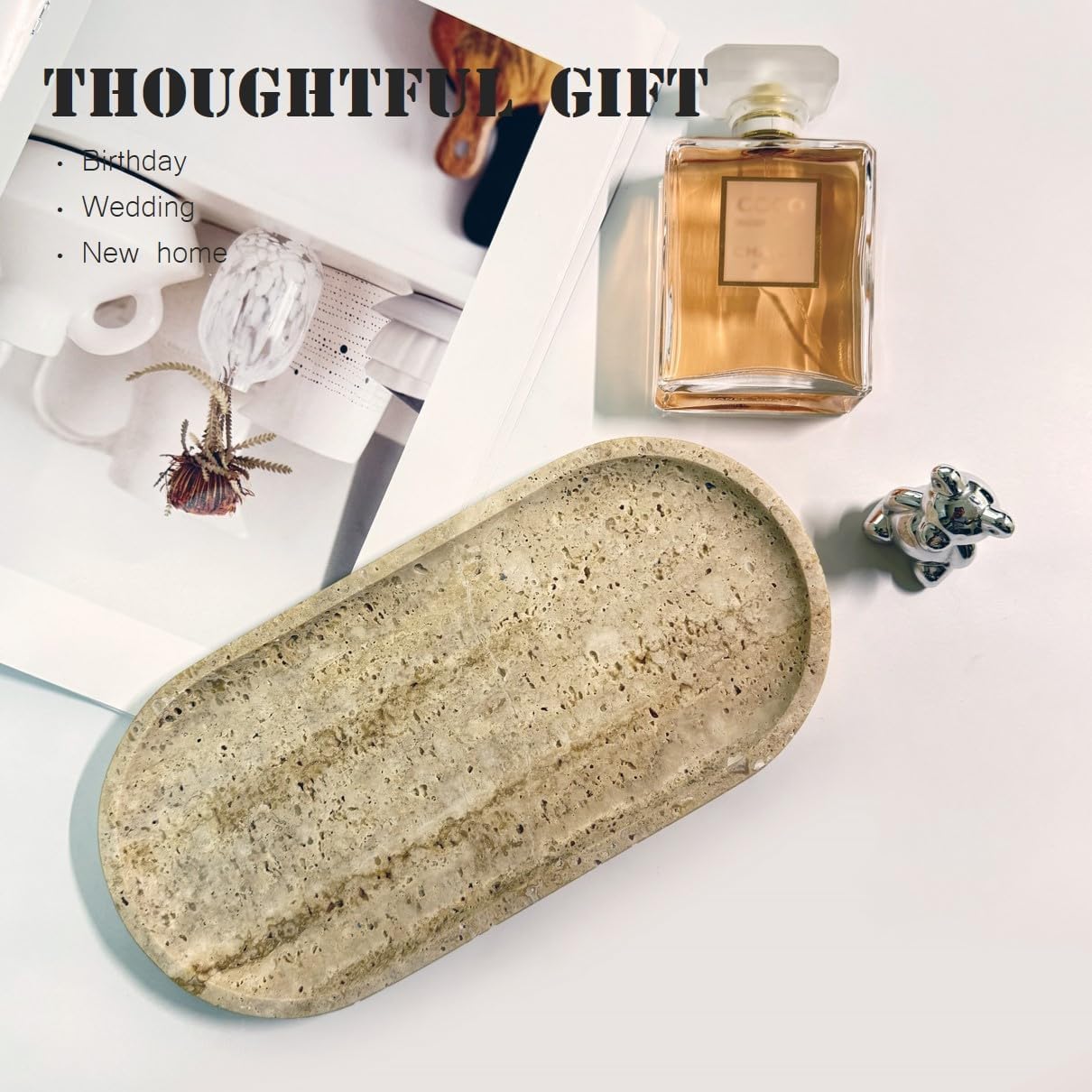 • NATURAL TRAVERTINE FROM TURKEY: Made from premium travertine stone sourced in Denizli, Turkey. This travertine oval tray showcases the natural beauty of stone with balanced pores and smooth texture. A durable luxury stone tray that is waterproof, stain-resistant, and perfect as a decorative tray for jewelry, perfume, or candles