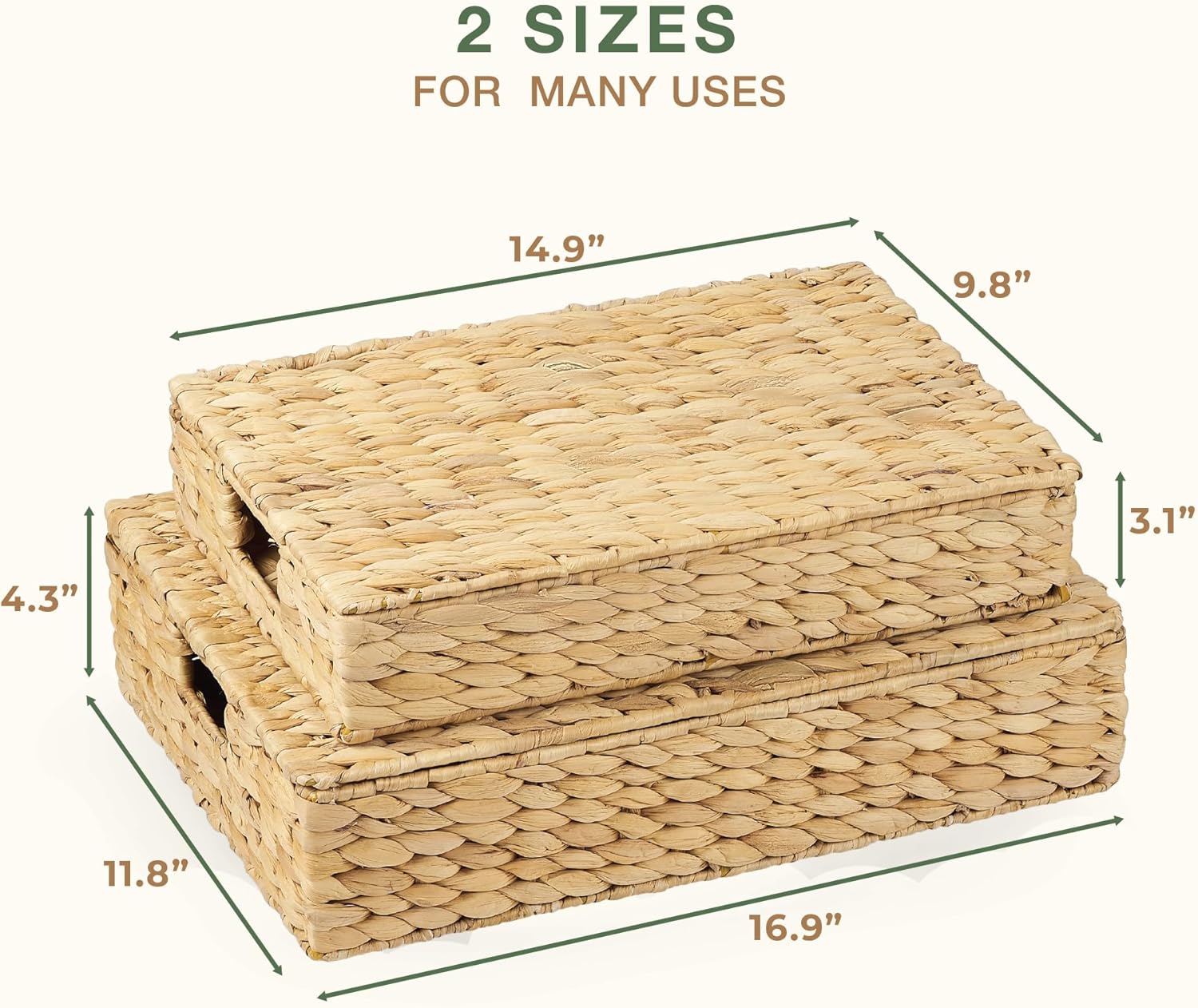 Set of 2 Wicker Baskets with Lid for Organizing - Decorative Storage Boxes With Lids for Home Decor, Shelves - Organic Modern Home Decor - Remote Box - Coffee Table Basket