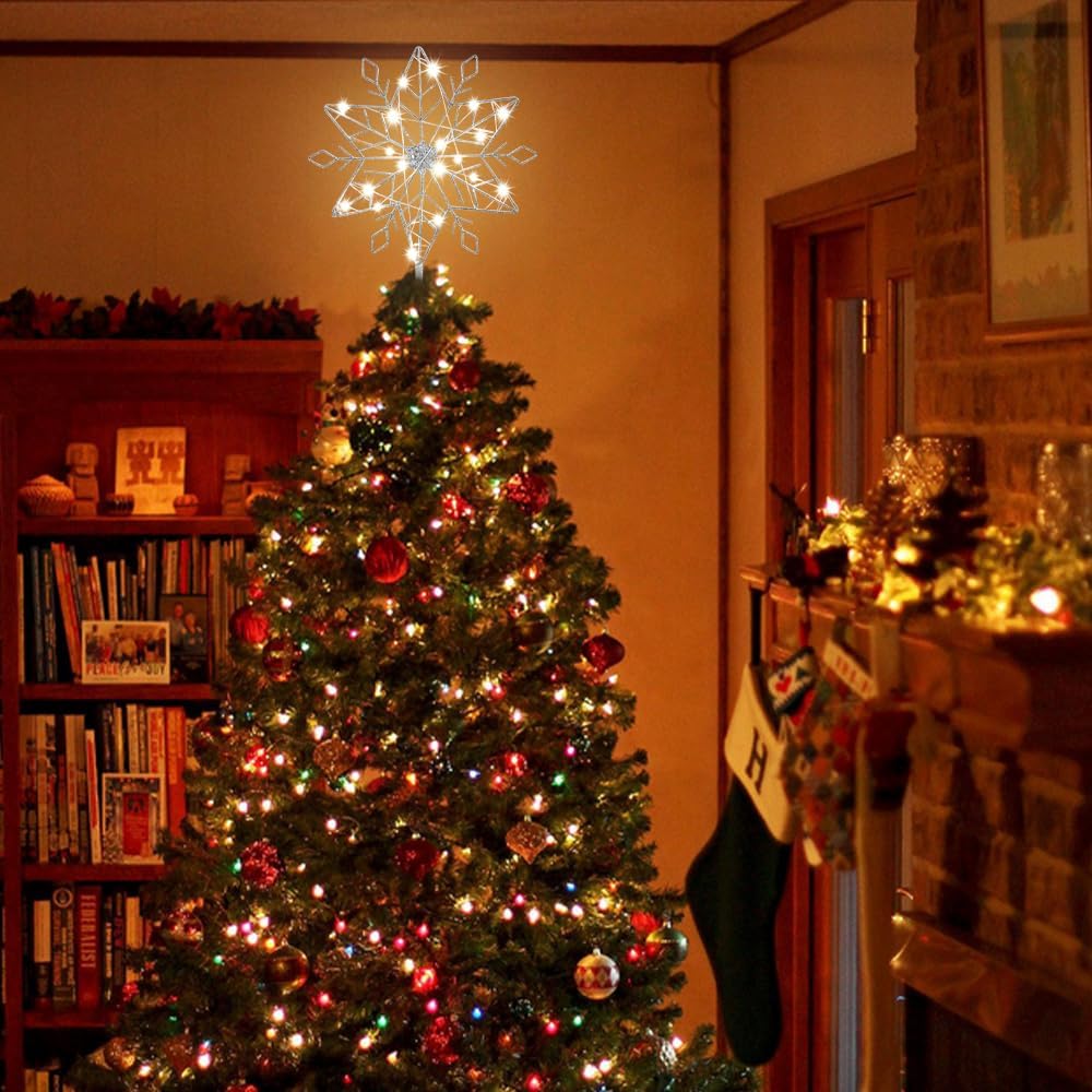 • 🎅Perfect Christmas Gift --- These tree toppers are crafted from durable steel, providing you with season after season of inspiring holiday beauty. Light up your Christmas tree in starry style with pre-lit tree topper. Ideal Christmas gift for your family, friends, colleagues, neighbors...