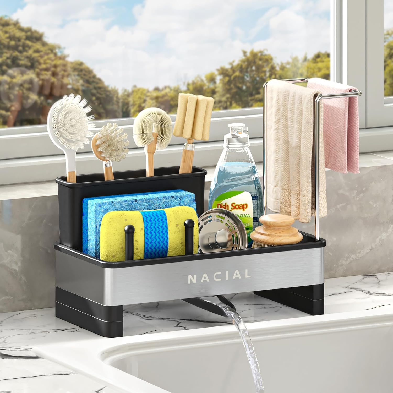 • Buy with Confidence: Nacial Sink Caddy seamlessly blends stylish design with smart storage, instantly organizing your kitchen sink, bathroom vanity, or countertop. When you choose Nacial, you’re not just getting high-quality sponge holder for kitchen; you’re also gaining peace of mind. Nacial offers 3-Year Limited Warranty, 1-Year Replacement Guarantee, and Lifetime Product Support. If you need any help [Login > choose "Your orders" > find the order lD >click "CT seller]. With Nacial, you can buy with confidence, Nacial Support is Always ON