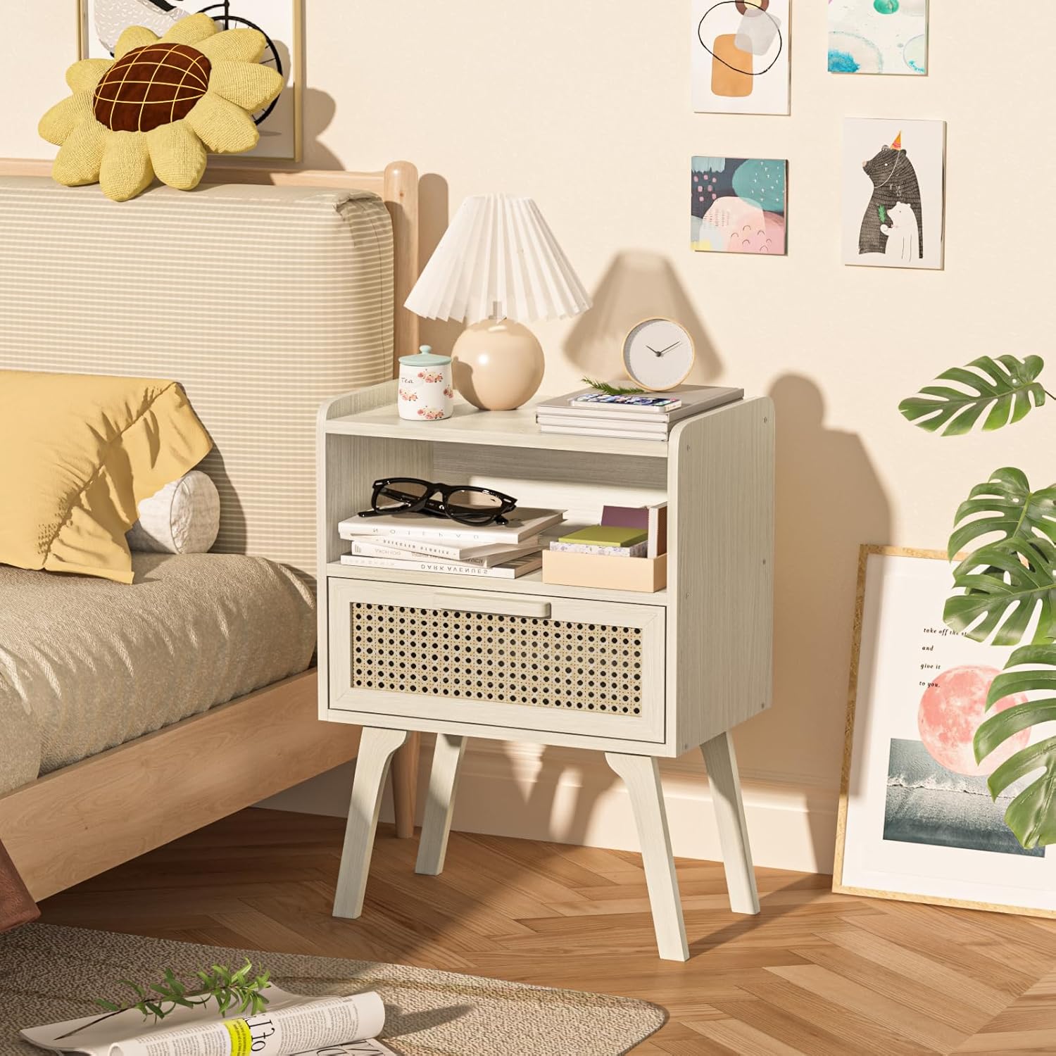• [Handmade & Use Scenarios] The handmade solid wood legs and drawer handle retain the original grain of the wood. Being a bedside table is not the only role it excels in. It can be placed in the living room, bedroom, office and other small places. It can hold everything you need within reach. Let the charming little rattan side table be a part of your life.