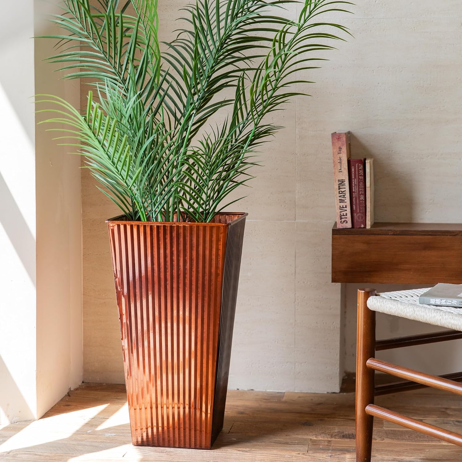 • DIMENSIONS: Large 22-inch tall copper planters measure 14 inches wide and deep, perfect for statement plants and outdoor displays