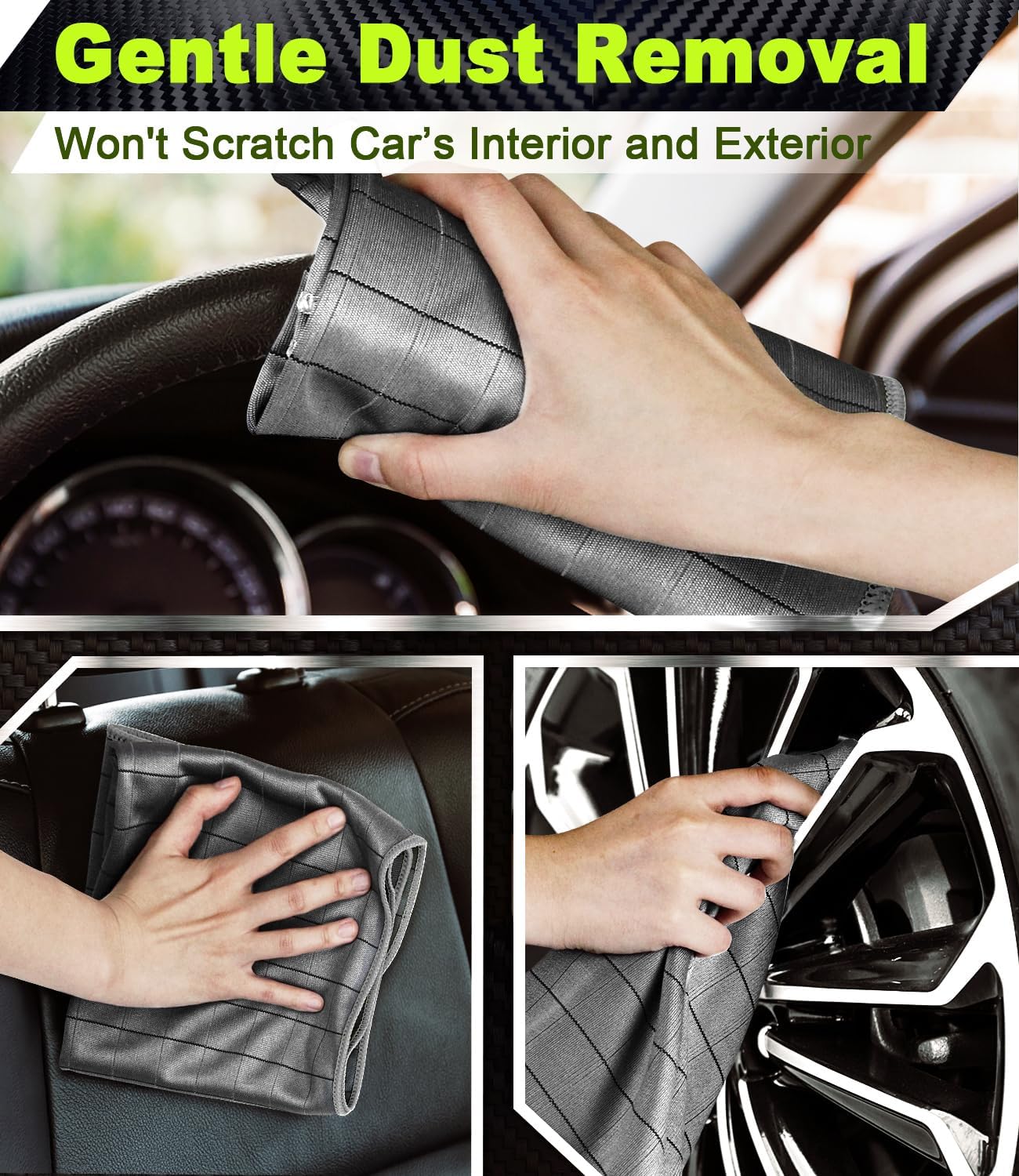 • Carbon Fiber Technology: This microfiber cleaning cloth is made with carbon elements that give it powerful cleaning ability, easily tackling fingerprints and grease. It's100 % safe on car paint, and perfect for shiny surfaces like glasses and windows