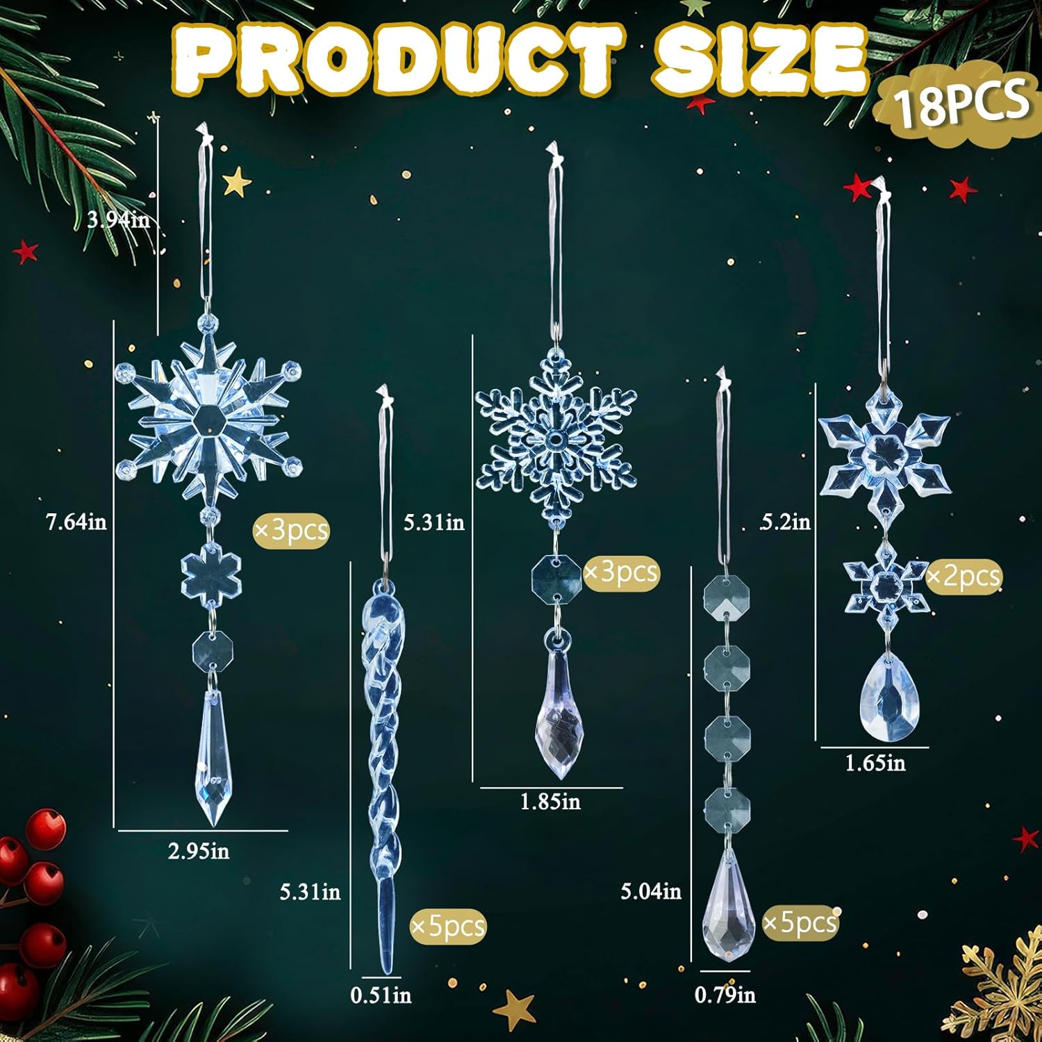 • Package: You will receive a great value pack of 18 pieces blue acrylic Christmas ornaments set in 5 styles, including 8pcs unique designed snowflakes ornaments (5.2", 5.3" and 7.64"), 5pcs 5.3" crystal icicles ornaments and 5pcs 5" bead garlands.