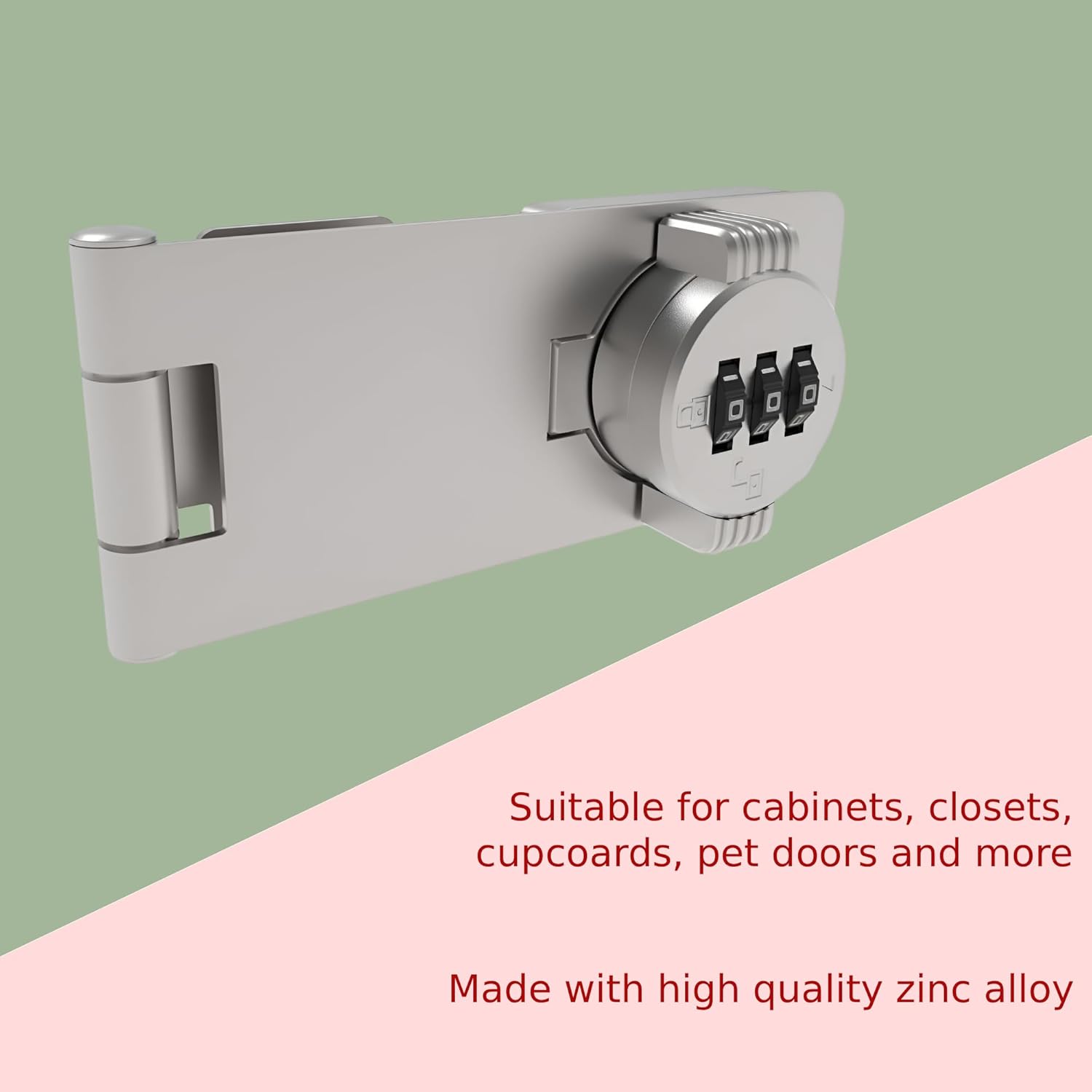 Keyless Combination Lock – 3-Digit Combination Lock for Cabinet Doors – Twist Knob Hasp Latch Lock with Password Code – Zinc Alloy Cabinet Door Latch for Kitchen Drawers, Cabinets, Cupboard (Silver)