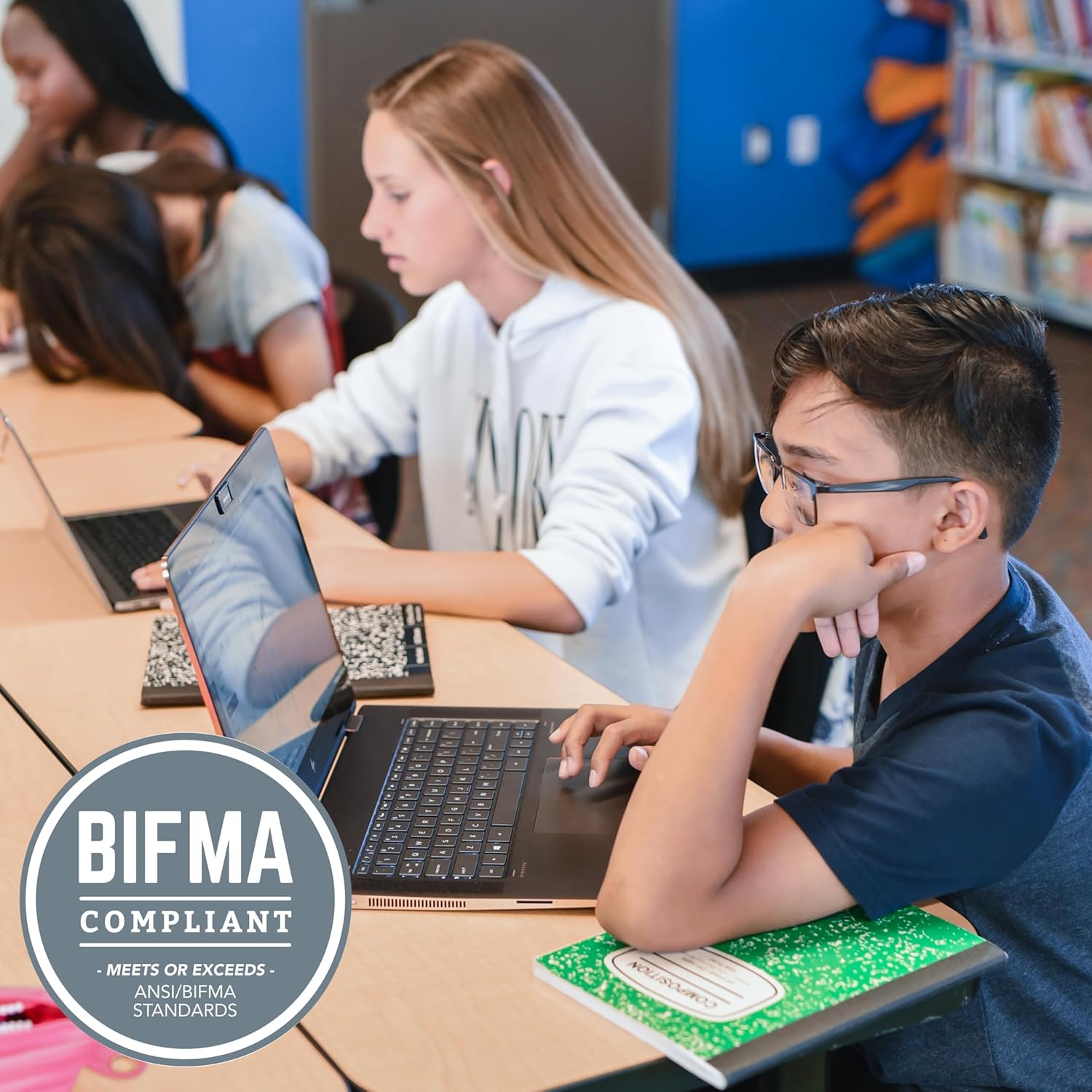 Factory Direct Partners FDP Rectangle (30 x 72 inch) Classroom Table with Adjustable Chunky Toddler Legs (15-24 in); Preschool, Kinder and Daycare Furniture - Pasadena Oak Top/Black Edge and Legs