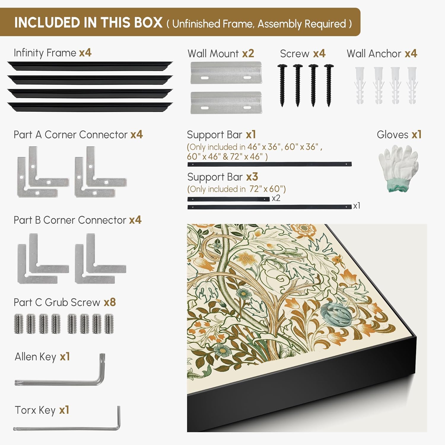 • Assembly Required: The artwork comes with the frame components unassembled. Don¡¯t worry ¡ª setup is straightforward and tool-friendly. For best results and accurate alignment, we recommend two people to ensure a smooth assembly and a stable, secure wall mount.