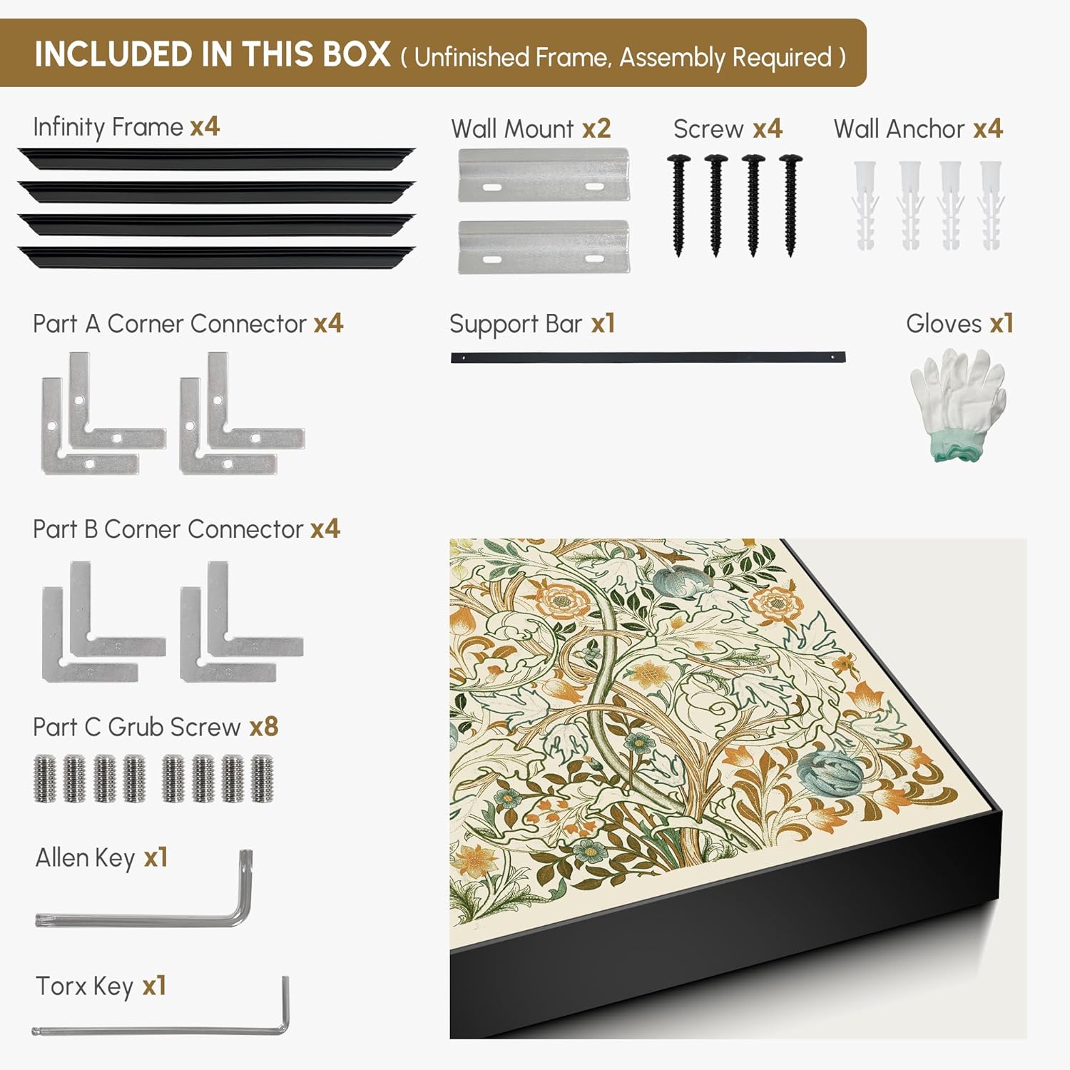 • Assembly Required: The artwork comes with the frame components unassembled. Don¡¯t worry ¡ª setup is straightforward and tool-friendly. For best results and accurate alignment, we recommend two people to ensure a smooth assembly and a stable, secure wall mount.