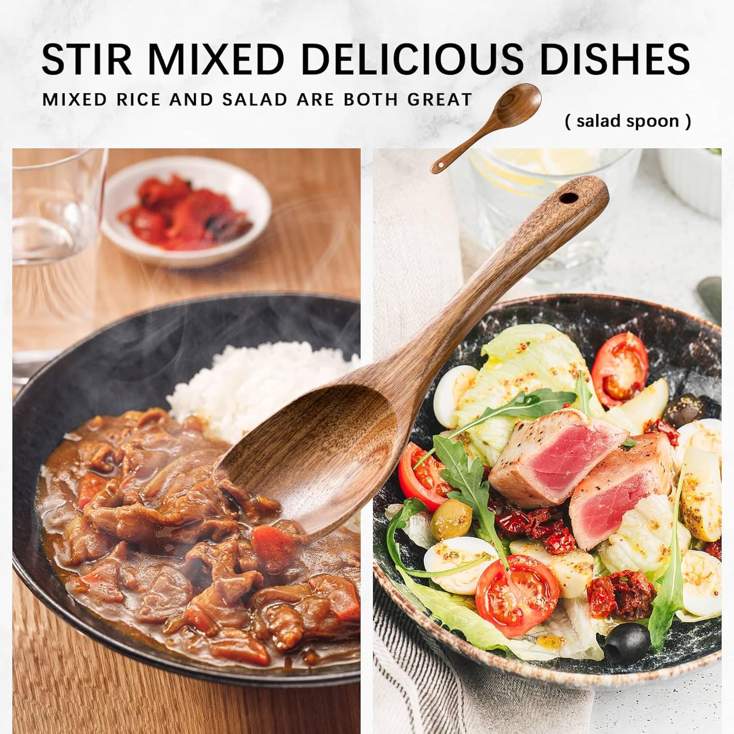 • HIGHLY LONG-LASTING:Say goodbye to breakage with our sturdy Wooden Spoons for Cooking,Made to handle heavy-duty use,our utensils won't let you down