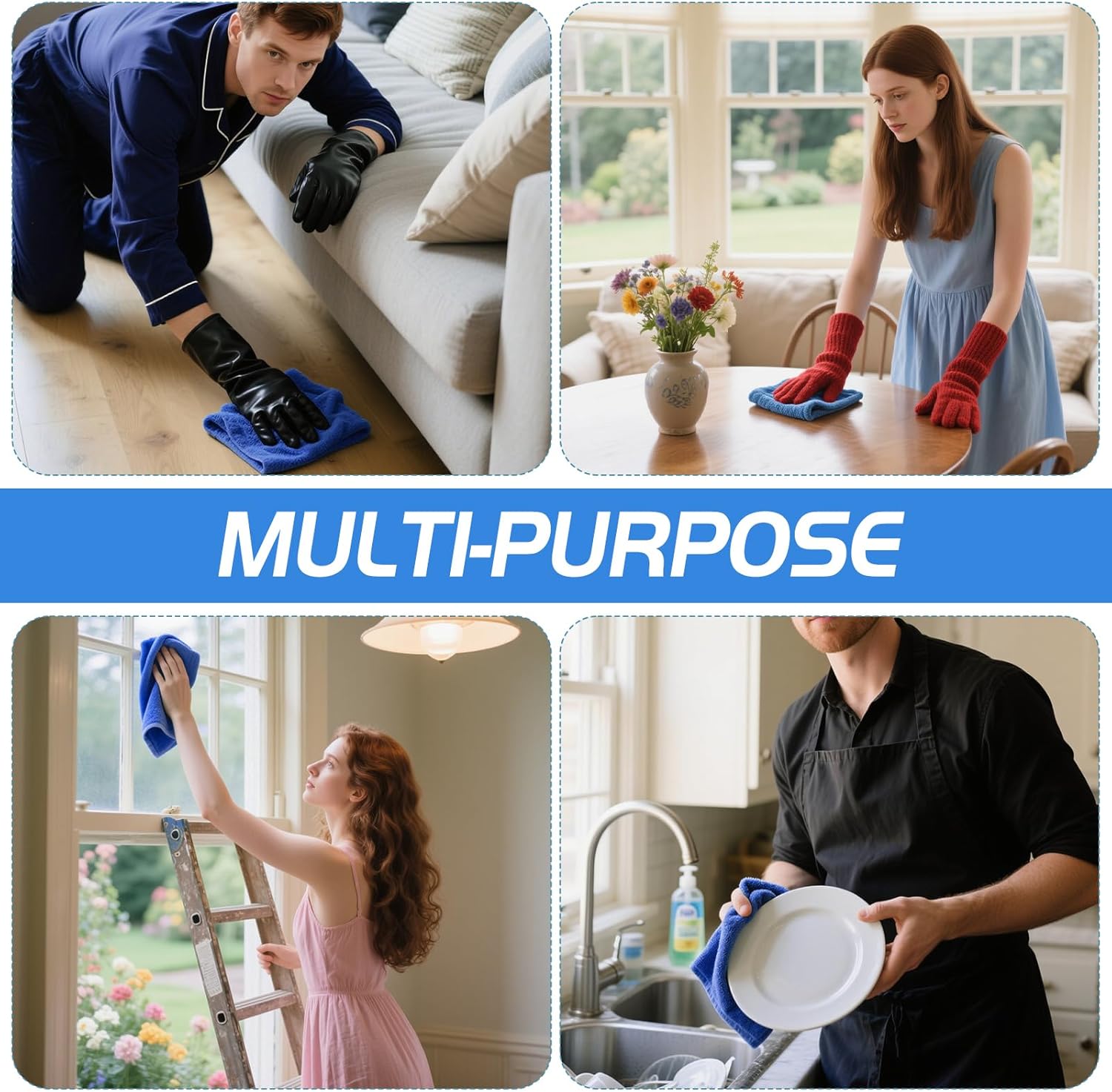 • Value Pack of 4 Blue Cloths: Comes with 4 premium blue cleaning cloths, perfect for rotating between rooms or tasks. Keep a set in the kitchen, garage, office, or bathroom for convenience.