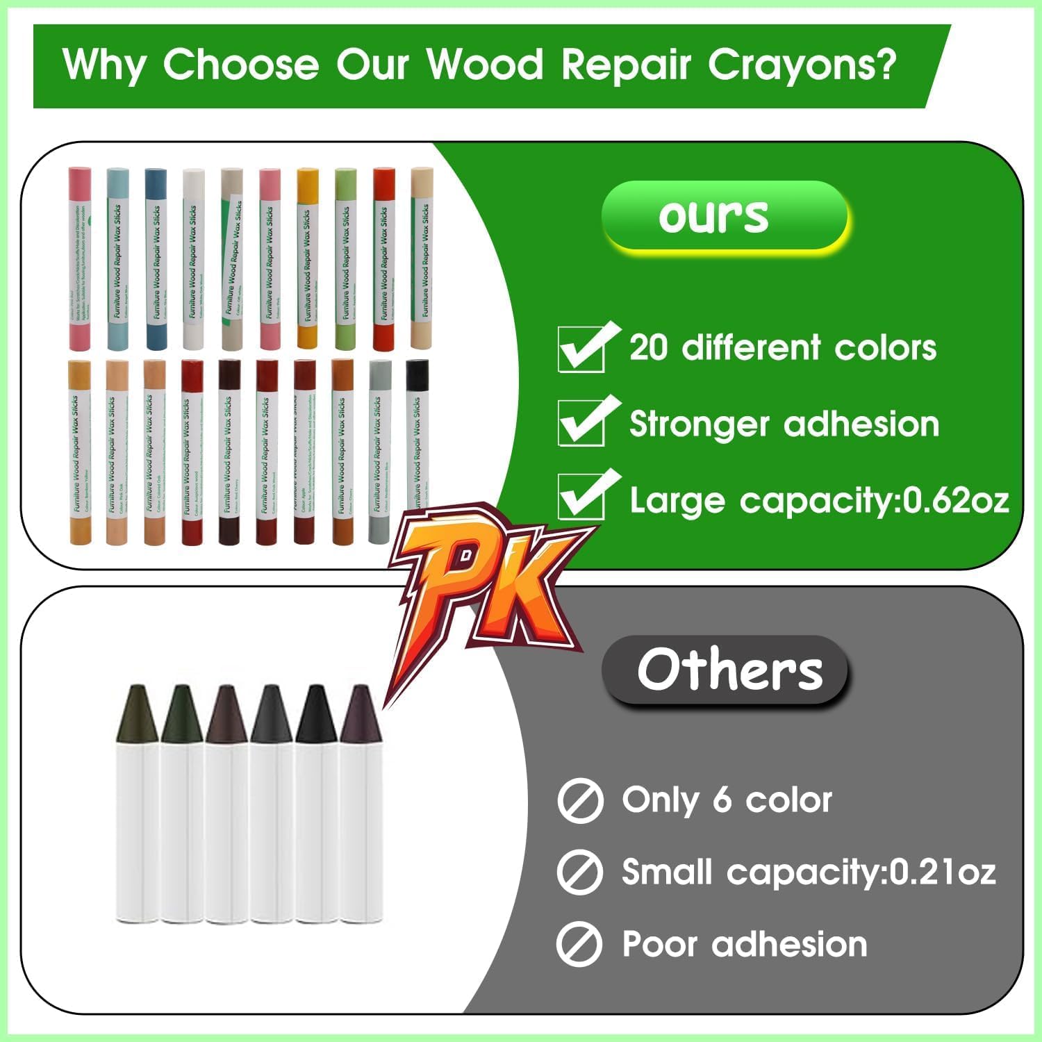 Furniture Markers Touch Up, 20 Colors Wood Filler Sticks, Wood Wax Crayons for Repairing Scratches, Scuffs, Cracks, Holes on Furniture, Floors, Cabinets, Tables, and Doors - Colorful Series