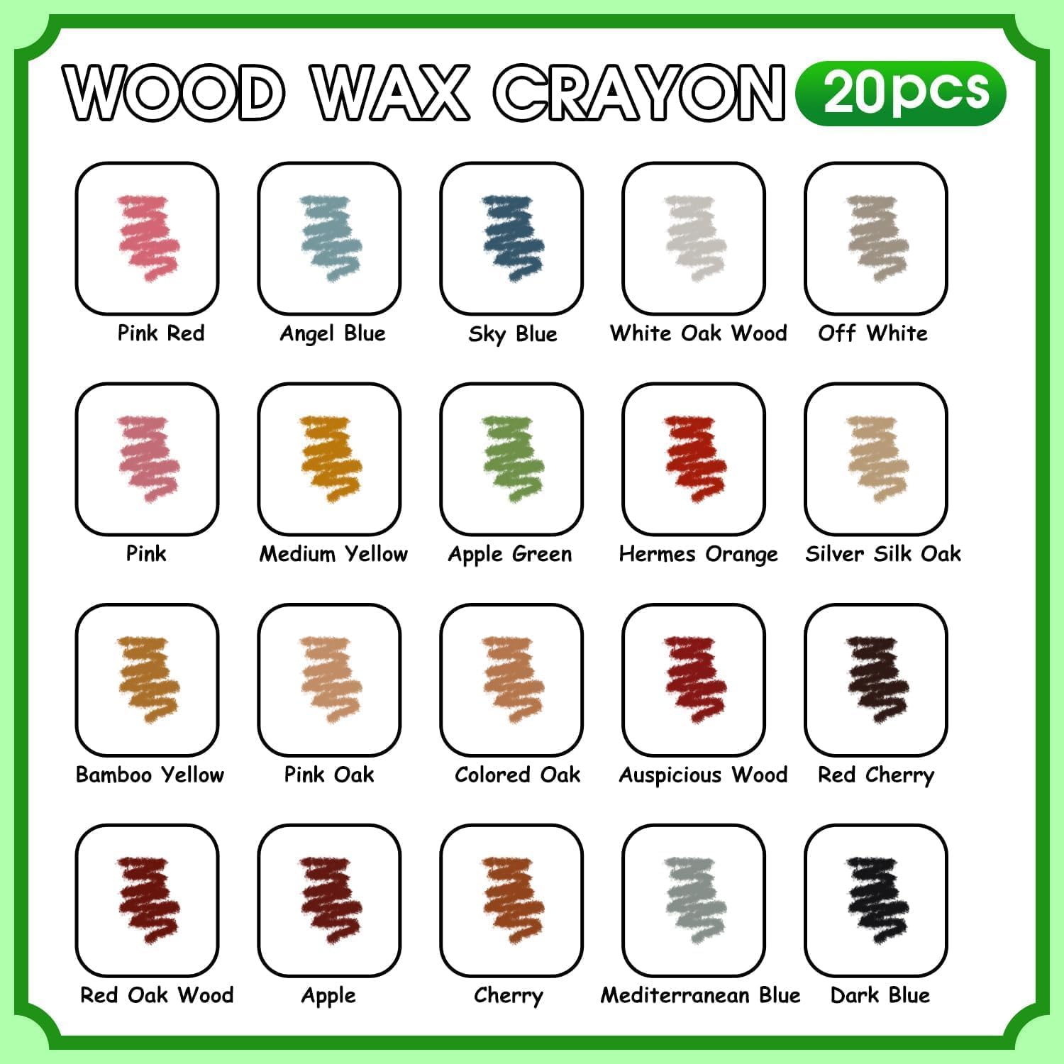 • 【20 Different Colors】: Wood furniture repair kit includes 20 colors: White Oak, Dark Blue, Apple, Red Cherry, Orange, Silver Silk Oak, Cherry, Pink, Mediterranean Blue, Angel Blue, Apple Green, Pink Red, Colored Oak, Auspicious wood, Bamboo Yellow, Pink Oak, Medium Yellow, Sky Blue, Red Oak, Off white