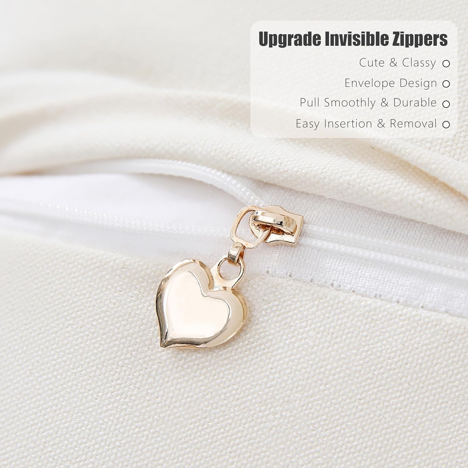 • INVISIBLE ZIPPER CLOSURE: Designed with a smooth heart invisible zipper, these cushion covers provide a seamless look while ensuring easy insertion and removal of pillow inserts. Our high-quality zippers enhance durability and smoothness compared to ordinary zippers, ensuring a struggle with a faulty zipper.