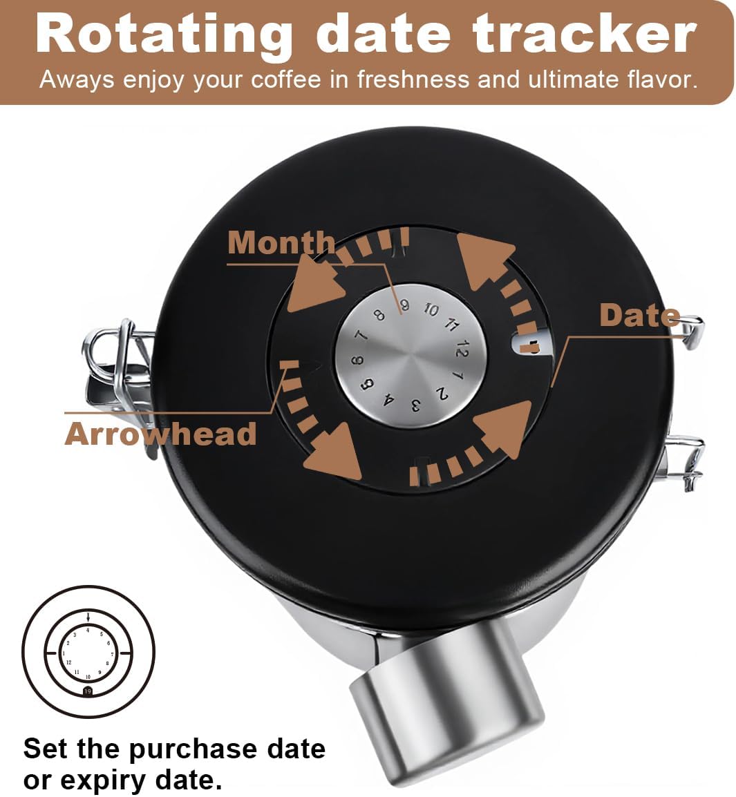 • HIGH QUALITY MATERIALS:This coffee storage container is made of 304 edible grade stainless steel, so you can use it with confidence. Don't worry about rusting or other issues with the coffee canister. It can effectively prevent corrosion and rust, keeping your sealed jar in its original shape