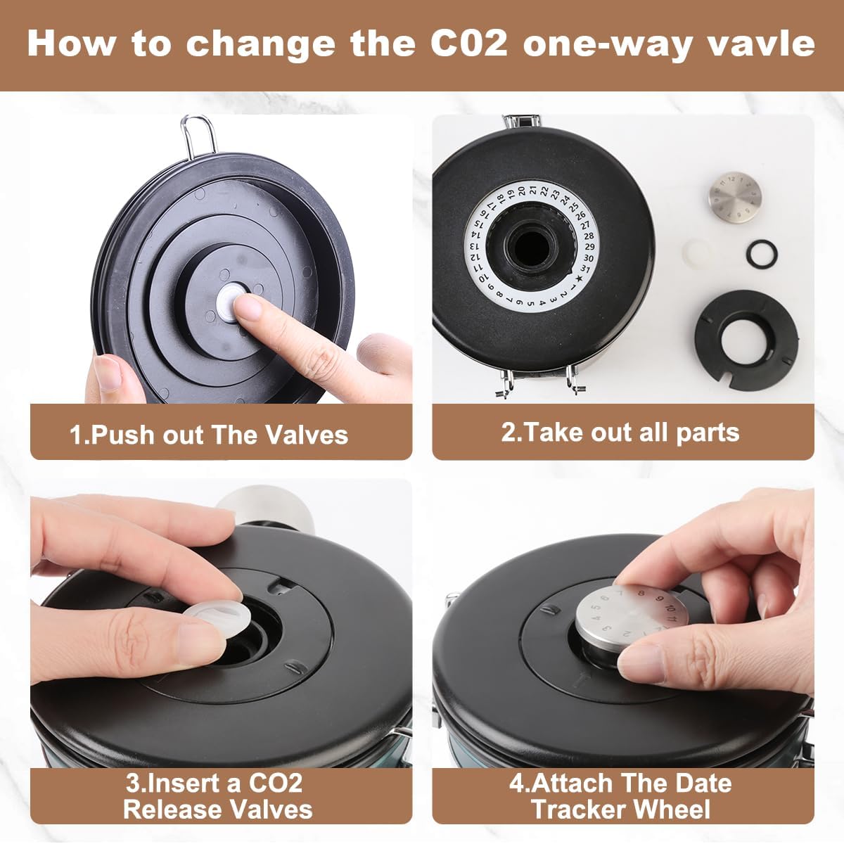 • STRONG SEALING:This coffee storage airtight canister adopts a one-way CO2 valve, which can release carbon dioxide from the airtight coffee containers, effectively isolating oxygen and water vapor from entering the coffee jars, preventing the food inside the coffee jar from getting wet, and thus maintaining the freshness of the coffee beans